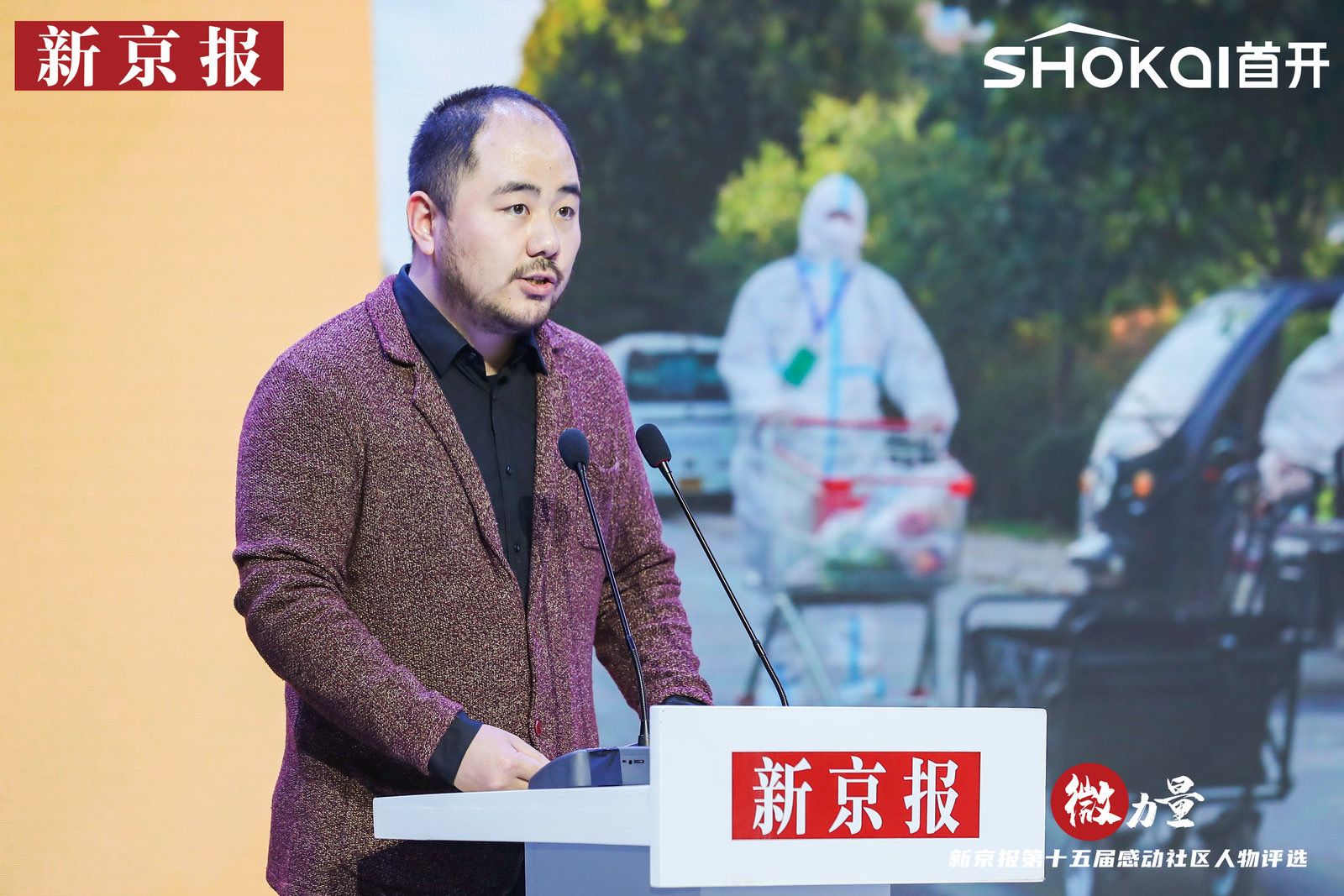 2022年1月19日,新京报第十五届感动社区人物评选颁奖典礼上,皇甫晓朋在演讲。