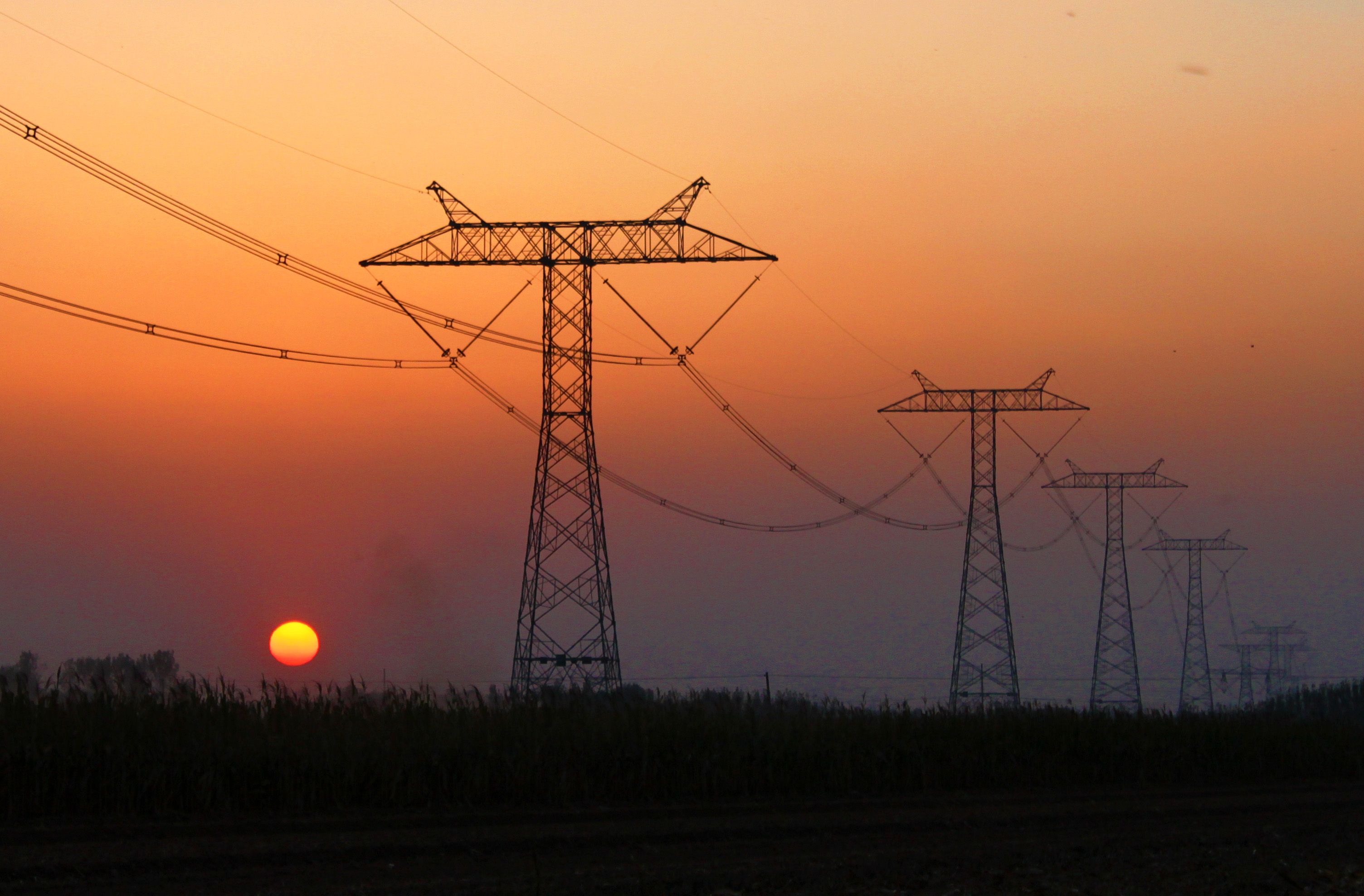 夕阳下望不到头的电力设施。图/IC photo