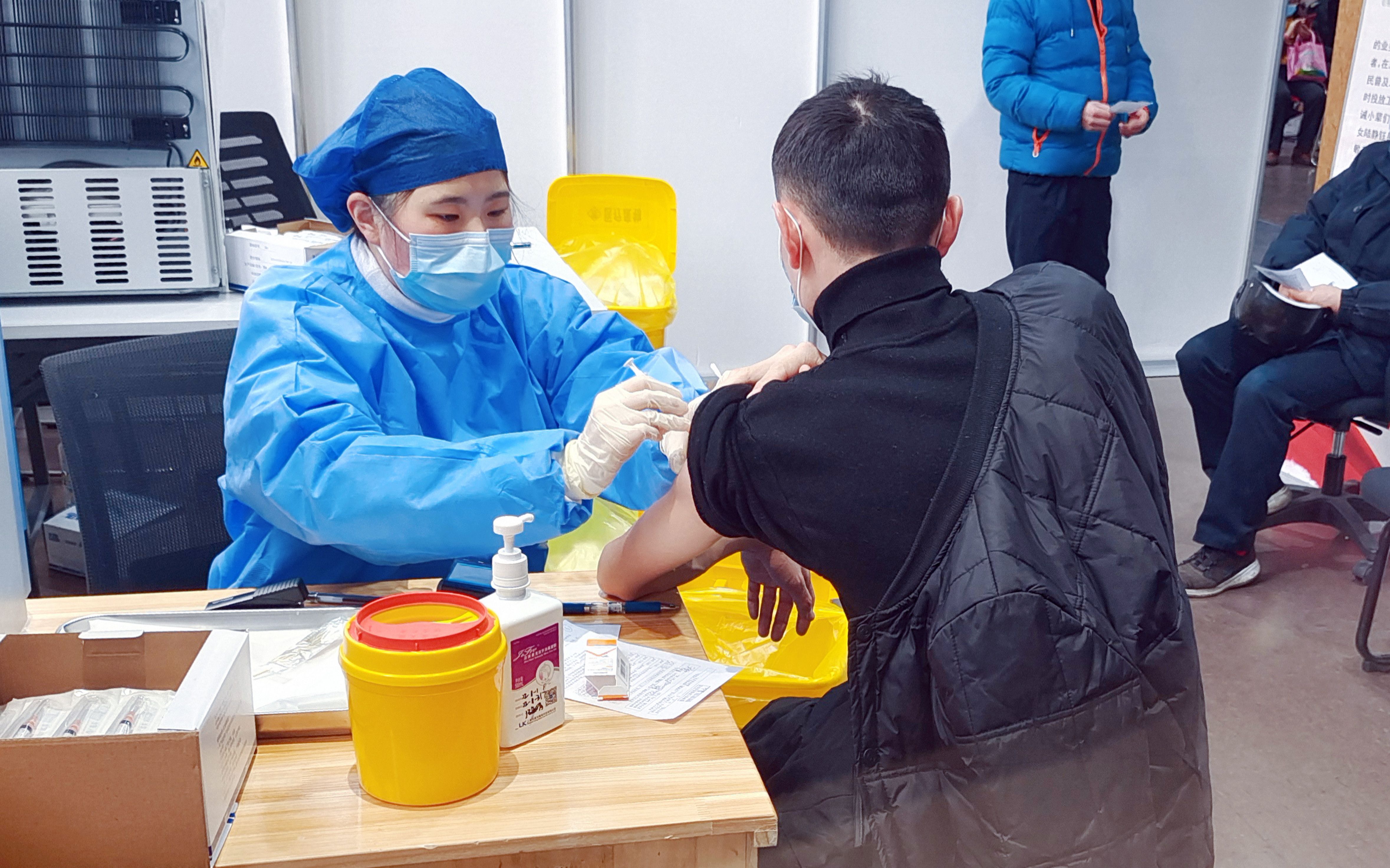 1月14日,上海徐汇区文化馆,上海市民及来沪工作者积极接种免费疫苗。图/IC photo