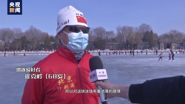 滑冰爱好者 崔克岭(68岁):到现在玩滑冰已经52年了,所以对这块冰场有着浓厚的感情。