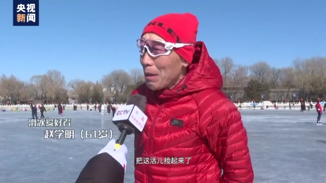 滑冰爱好者 赵学明(61岁):从小就在这玩,退了休以后怎么也找点事干,把这活捡起来了。