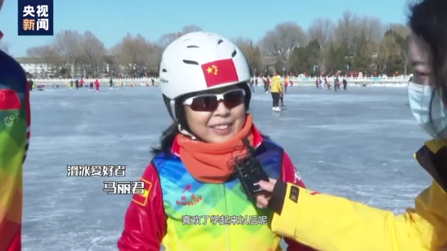 滑冰爱好者 马丽君:确实是靠他一带,最后我才上瘾。学起来以后,感觉到非常好。确实就像说的是健大脑健小脑,练心练肺练腿脚。