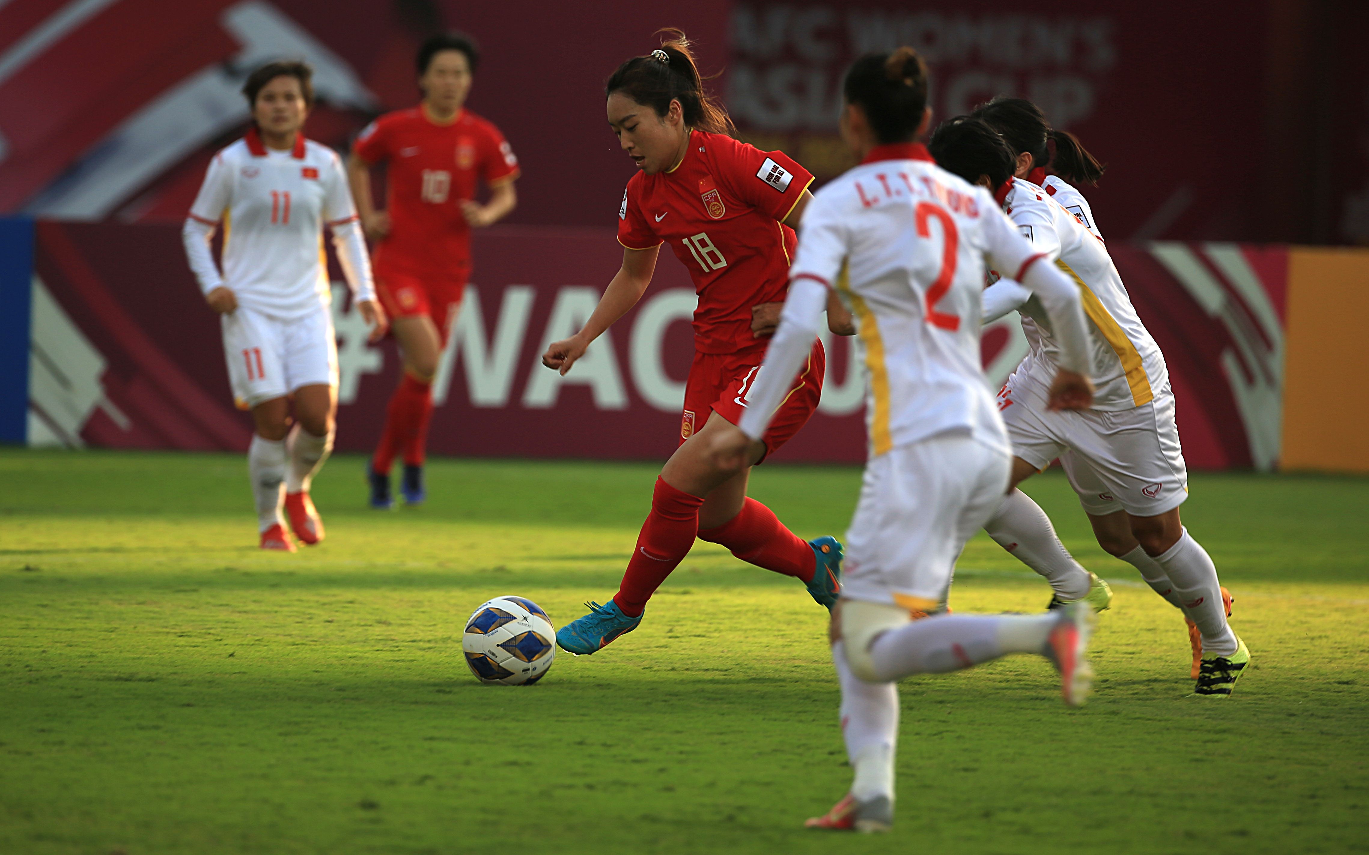 中国女足在小组赛并未遇到考验,先后以大比分战胜中国台北队和伊朗队,由于东道主印度队因疫情影响退出本届亚洲杯,“铿锵玫瑰”与印度队的最后一轮小组赛取消。球队主帅水庆霞并不担心少赛一场的影响,在等待淘汰赛对手出炉的几天时间里,中国女足通过训练保持强度。