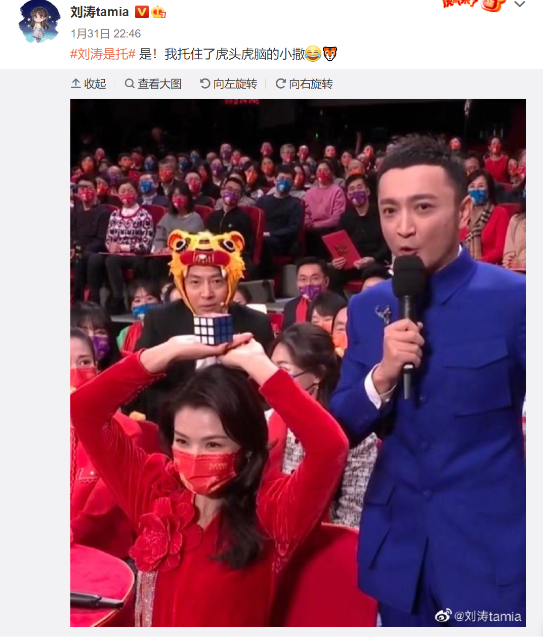 除夕当晚,刘涛在社交媒体上回应“刘涛是托”一事。