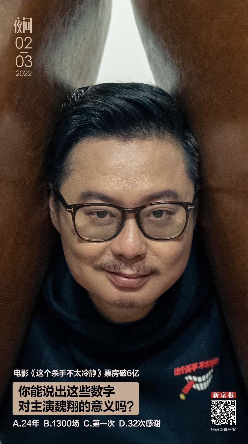答案:24年是魏翔学表演至今的时间,1300场是他在话剧舞台上完成的场数,第一次是他这次主演电影《这个杀手不太冷静》,这是他第一次饰演男主角。32次感谢则是在新京报专访中他对外界、对朋友表达的谢意次数。