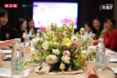 第一棒火炬手丁宁和第二棒火炬手撒贝宁携手致意。