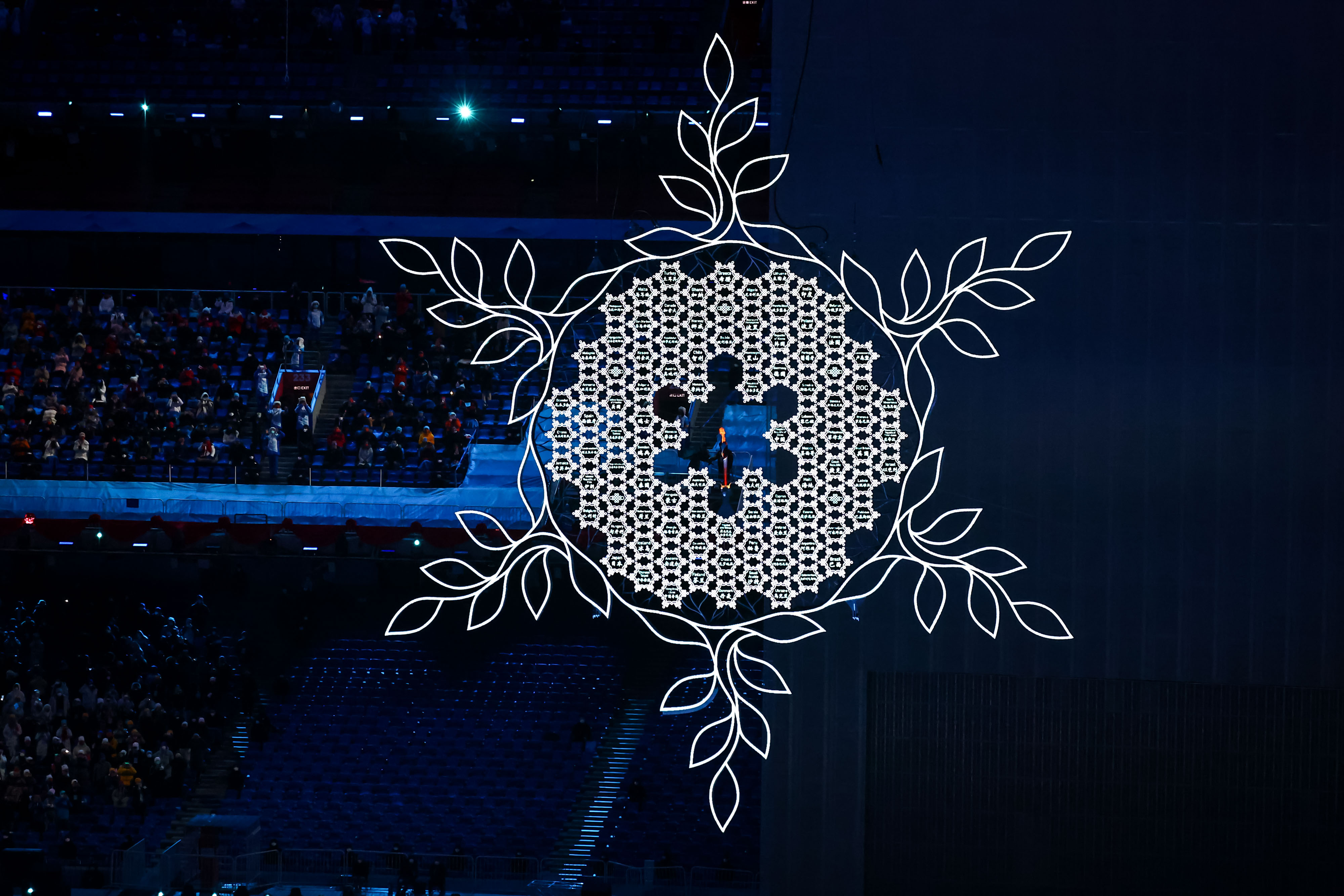 现场引导员都手持一朵“雪花”。根据《开幕式媒体指南》,按“一朵雪花”贯穿始终的设计理念,引导员手持的引导牌,采用发光的雪花造型。设计灵感来自“中国结”的图案:中国结从头到尾用一根线编成,寓意团结吉祥。雪花造型也寓意着每个代表团象征着奥林匹克大家庭的一片小雪花~详情>>>