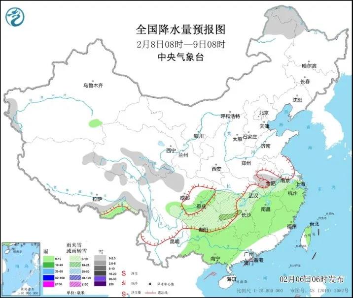 预计2月6日14时至7日14时,陕西东南部、河南南部、湖北西部和北部、安徽中部、江苏中部等地的部分地区有大雪,其中,湖北西南部、安徽大别山区等地局地有暴雪。上述部分地区新增积雪深度1~6厘米,局地可达10厘米以上。