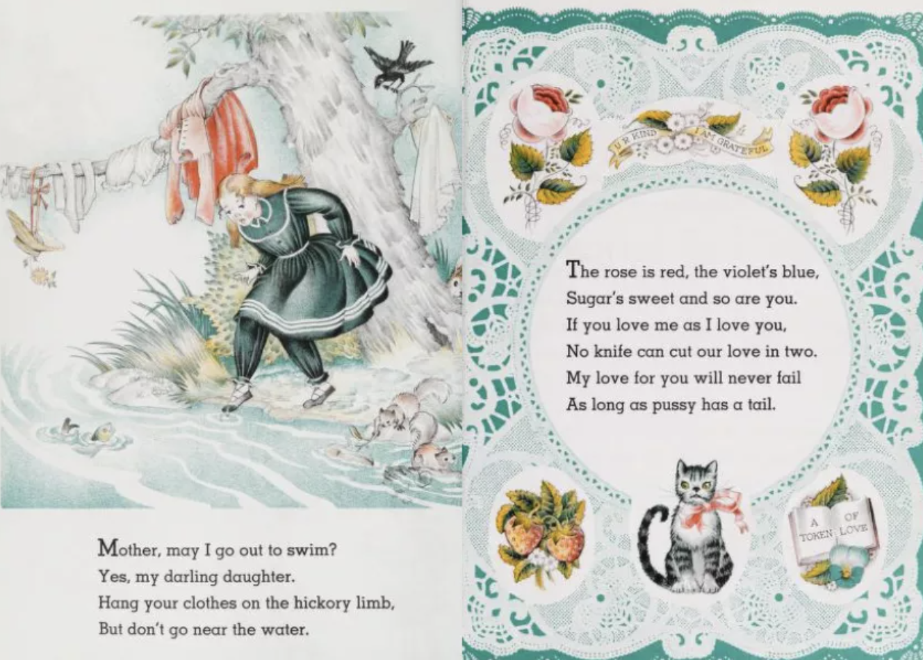 正当年节之际,1946年这部金奖之作《公鸡喔喔啼》又是童谣集,便不大想把它写成学院派气息过于浓郁的稿子。完成一篇从头至尾介绍美国童谣背后人类学仪式意义或历史渊源的文章固然不错,却属这一文类批评的“常规操作”,或者我们可以不局限于这一本美国童谣,而是以此为契机在比较中讨论能为本土原创童谣选集的经典化做点什么。