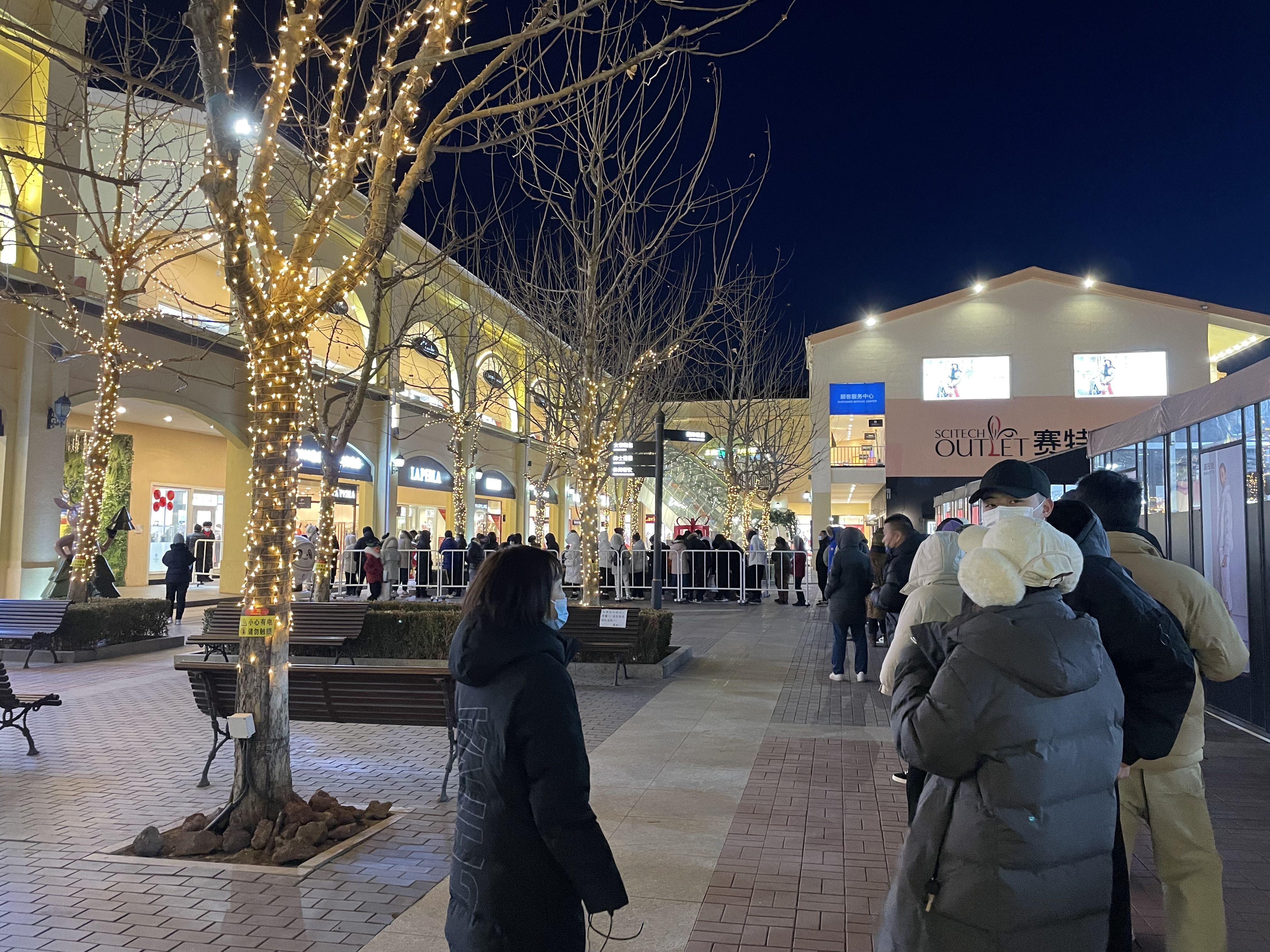 ▲2月5日晚,赛特奥特莱斯商场内的冬奥官方特许商店门外排起了长队。新京报记者 张静姝 摄