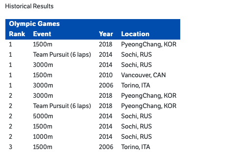 维斯特此前4次出征冬奥会获5金、5银、1铜。网络截图