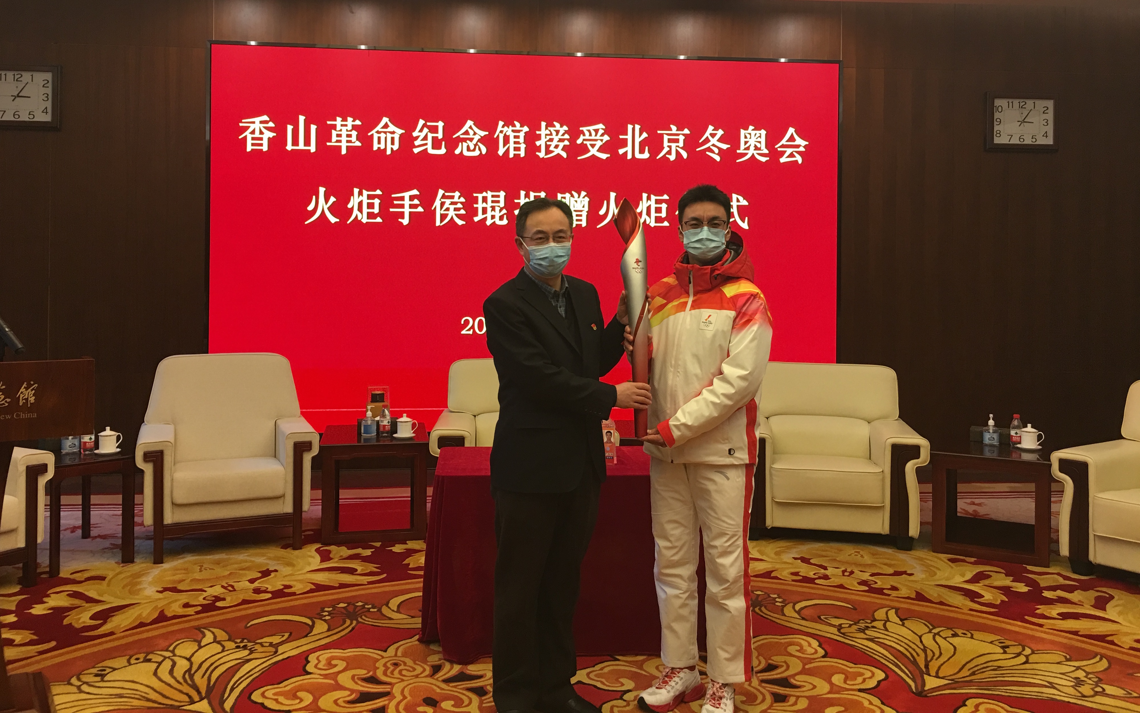 香山革命纪念馆接受北京冬奥会火炬手侯琨捐赠火炬仪式现场。香山革命纪念馆供图