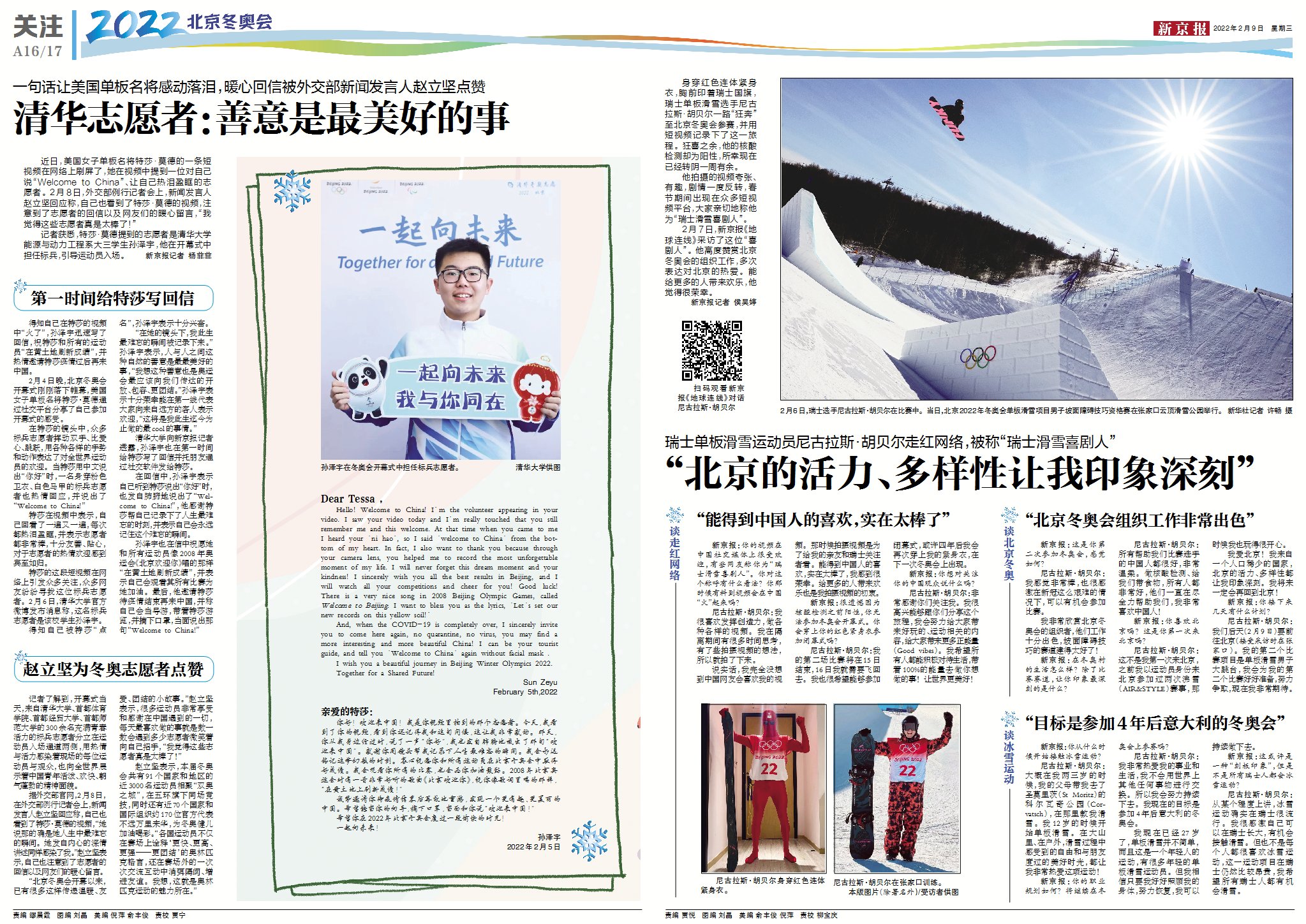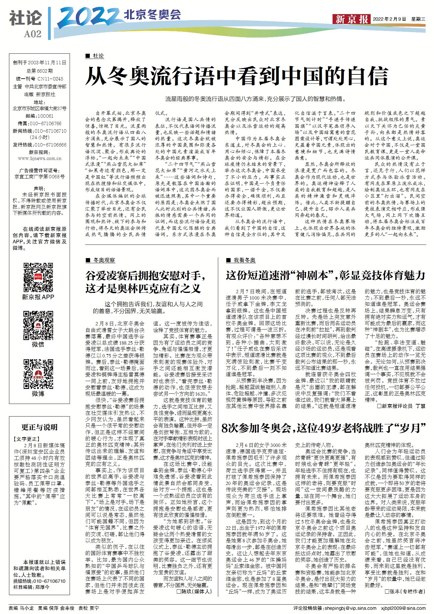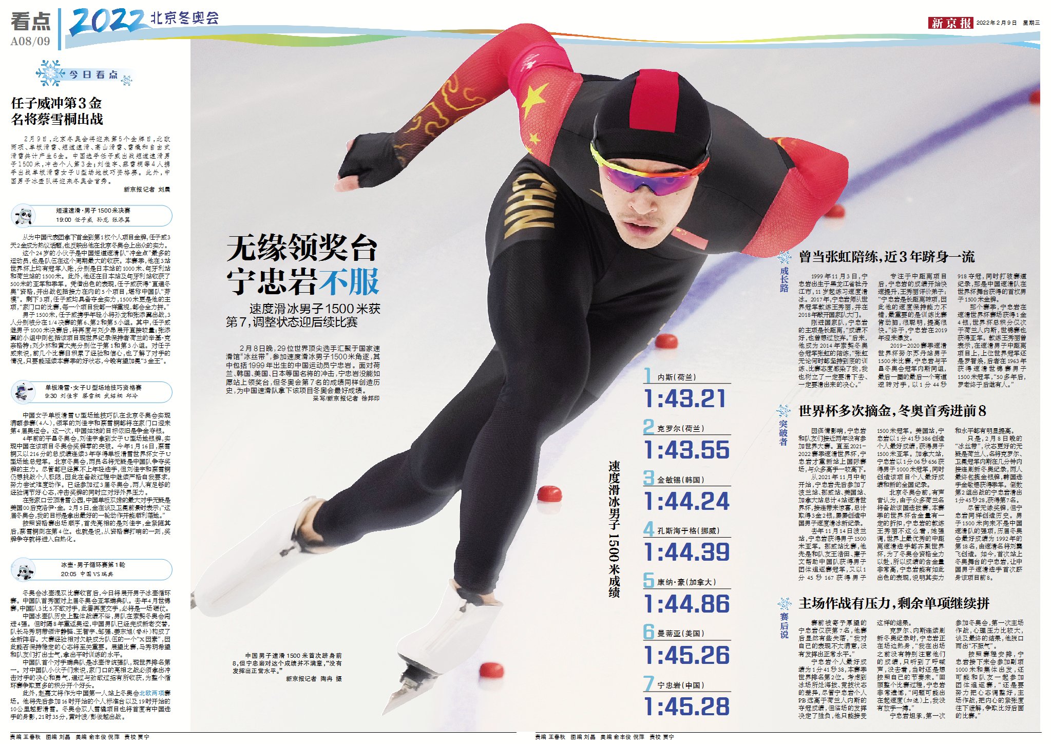 美丽心凌 | 新京报2月9日冬奥精彩版面速览
