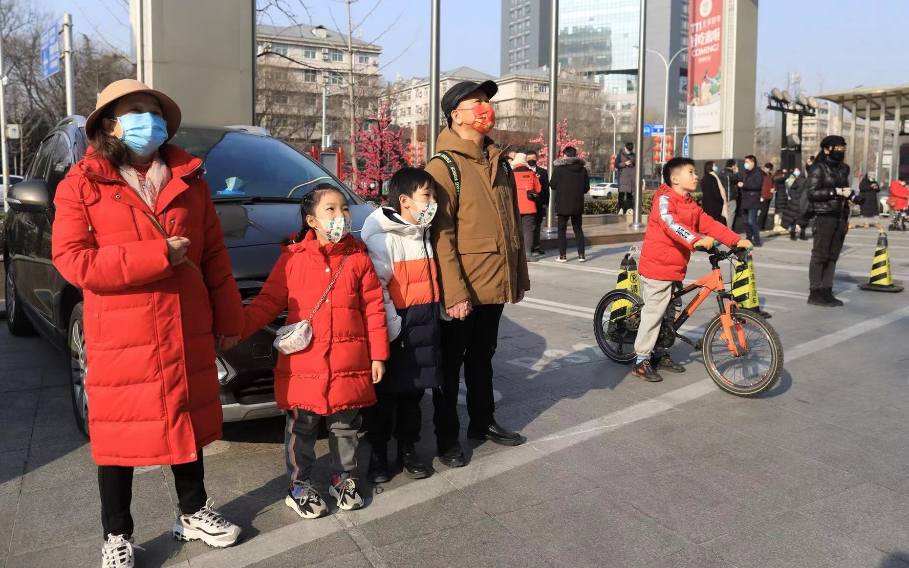 2月10日,海淀区当代商城外,许多市民前来观看8K超高清冬奥直播。新京报记者 浦峰 摄