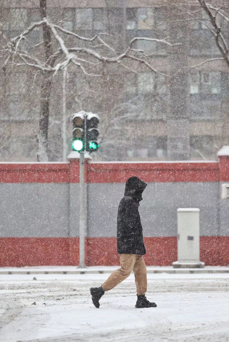 2月13日,四惠,市民行走雪中。