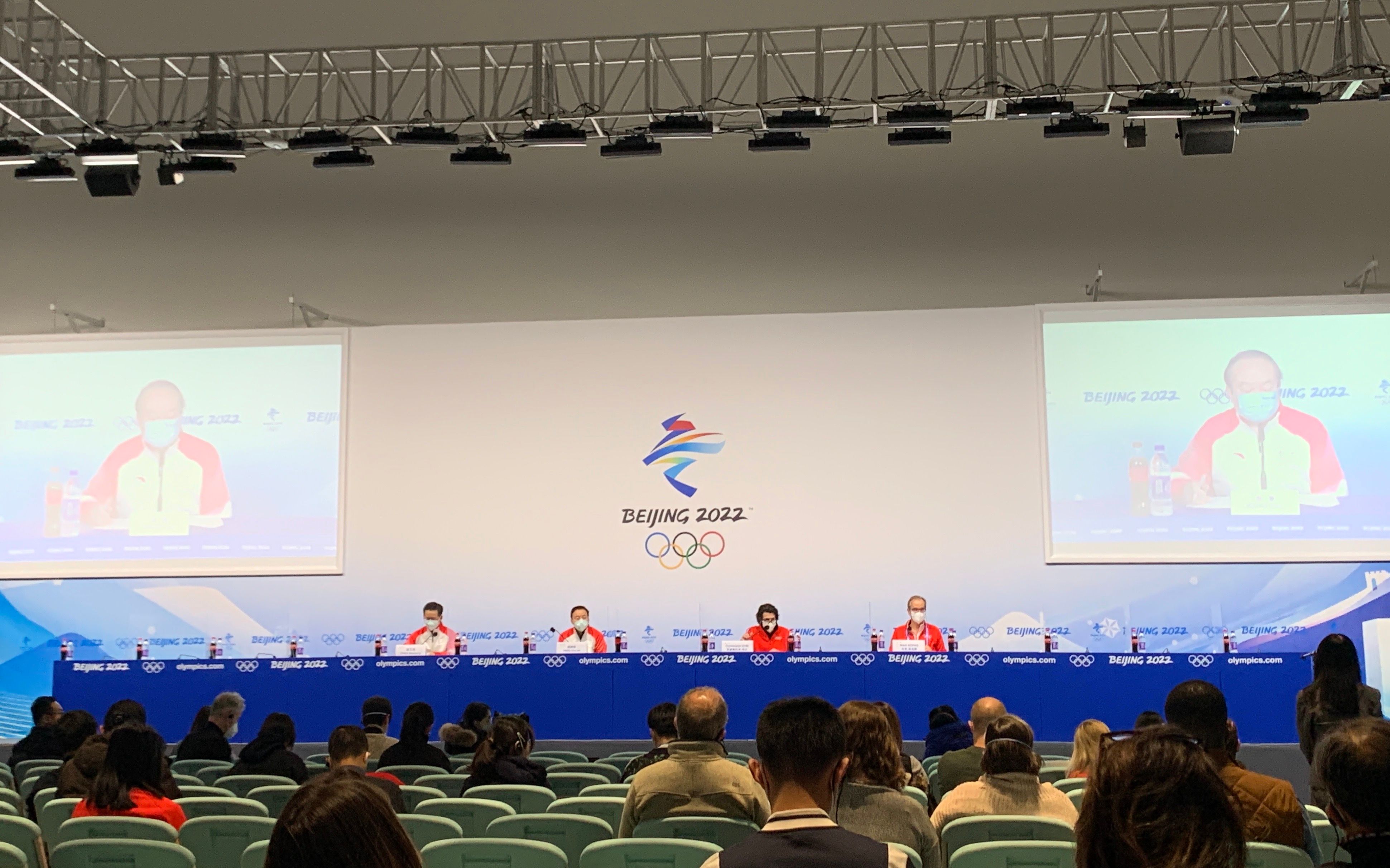 2月13日,北京冬奥会例行新闻发布会现场。新京报记者 孙海光 摄