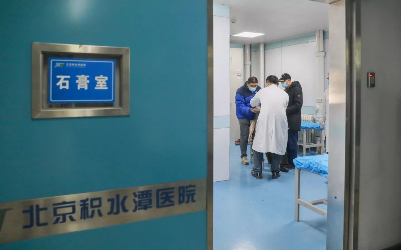 北京积水潭医院急诊的石膏室内,医生正在给患者进行石膏固定。北京积水潭医院供图