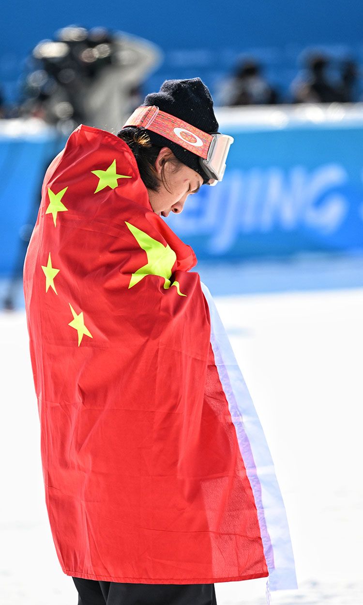 身披五星红旗的苏翊鸣。