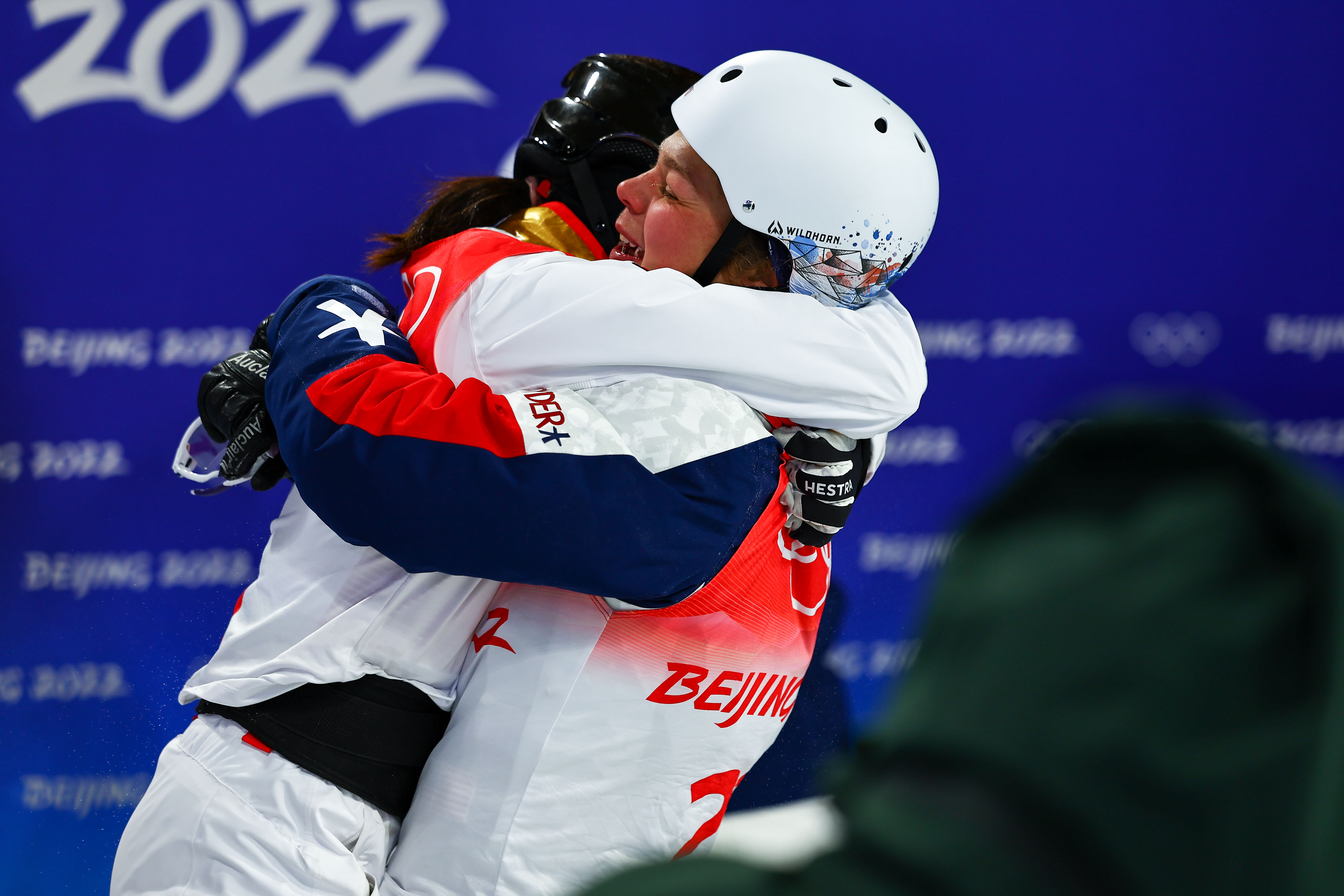 ▲美国选手阿什利·考德威尔拥抱徐梦桃,向她表示祝贺。图/IC photo