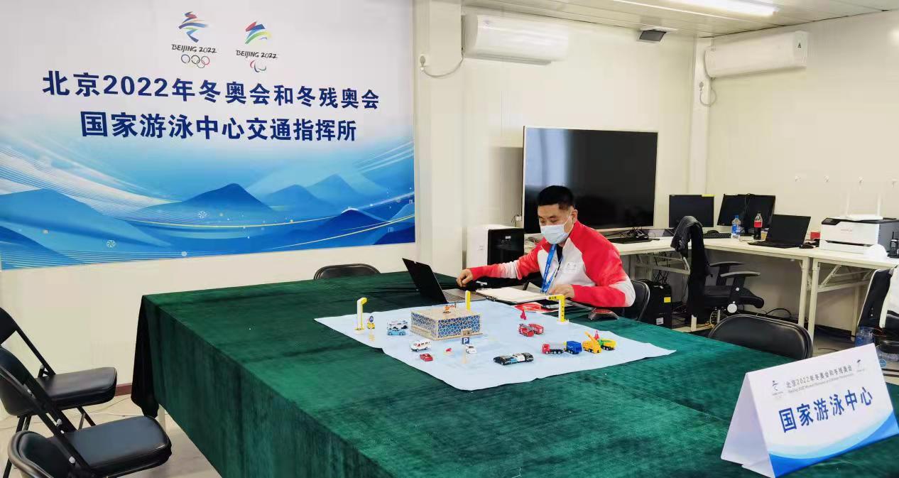 工作中的“冰立方”交通经理于家骥。北京市交管局供图