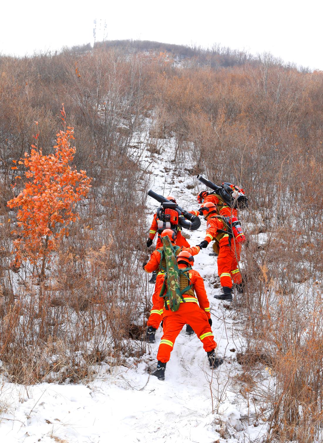 佳木斯市森林消防支队救援人员在崇礼山间开展携装巡护。受访者供图