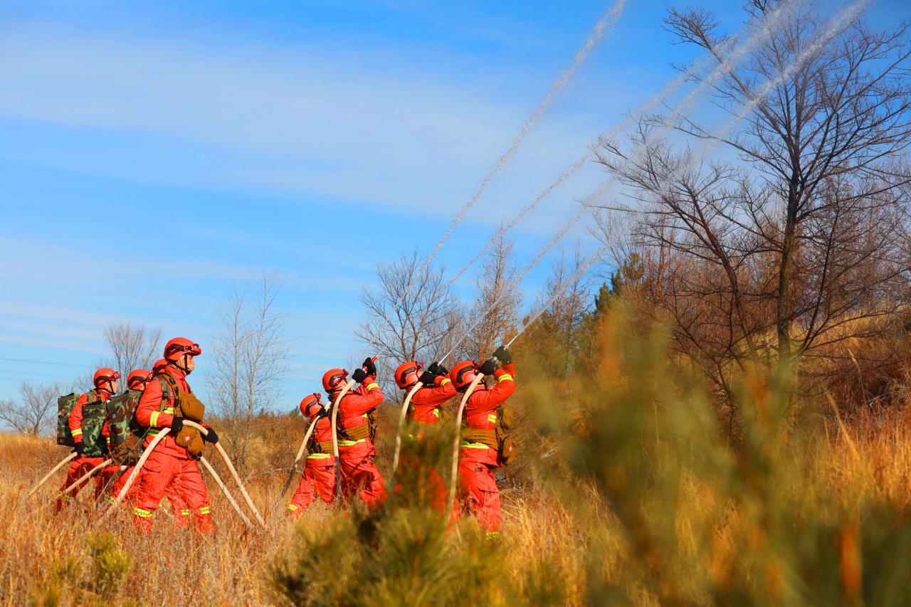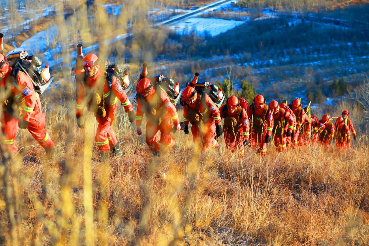 佳木斯市森林消防支队消防救援人员在崇礼山间开展携装巡护。受访者供图