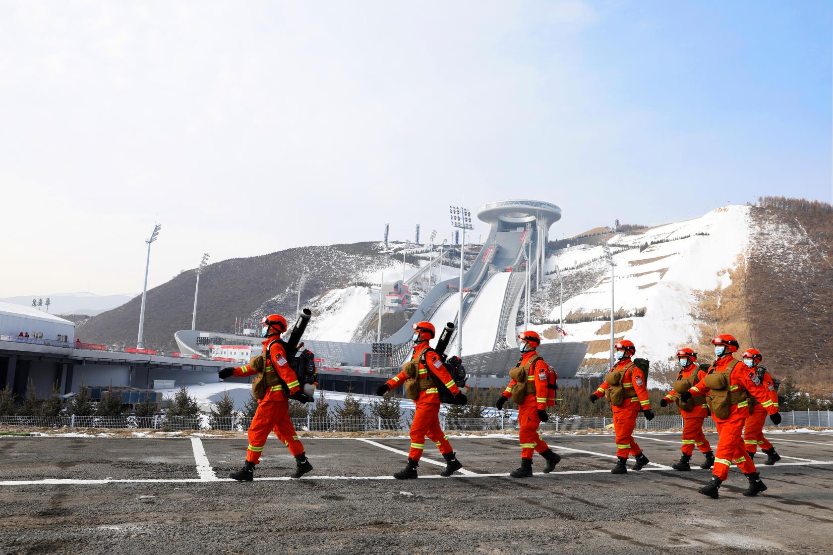 佳木斯市森林消防支队在张家口赛区奥运场馆外执勤。受访者供图