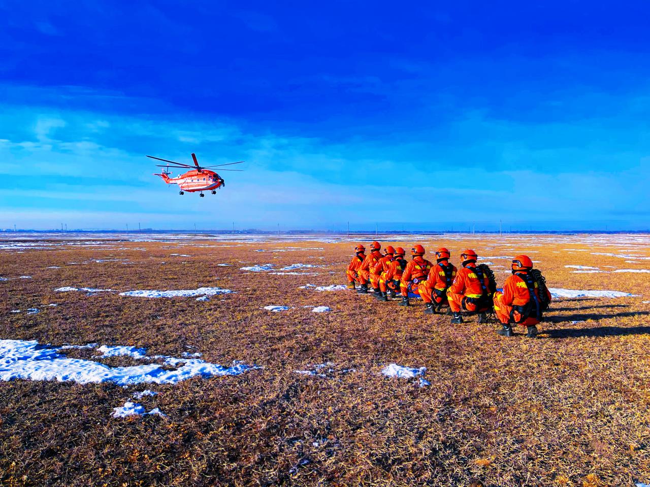 佳木斯市森林消防支队在张北坝上草原上开展空中巡护。受访者供图