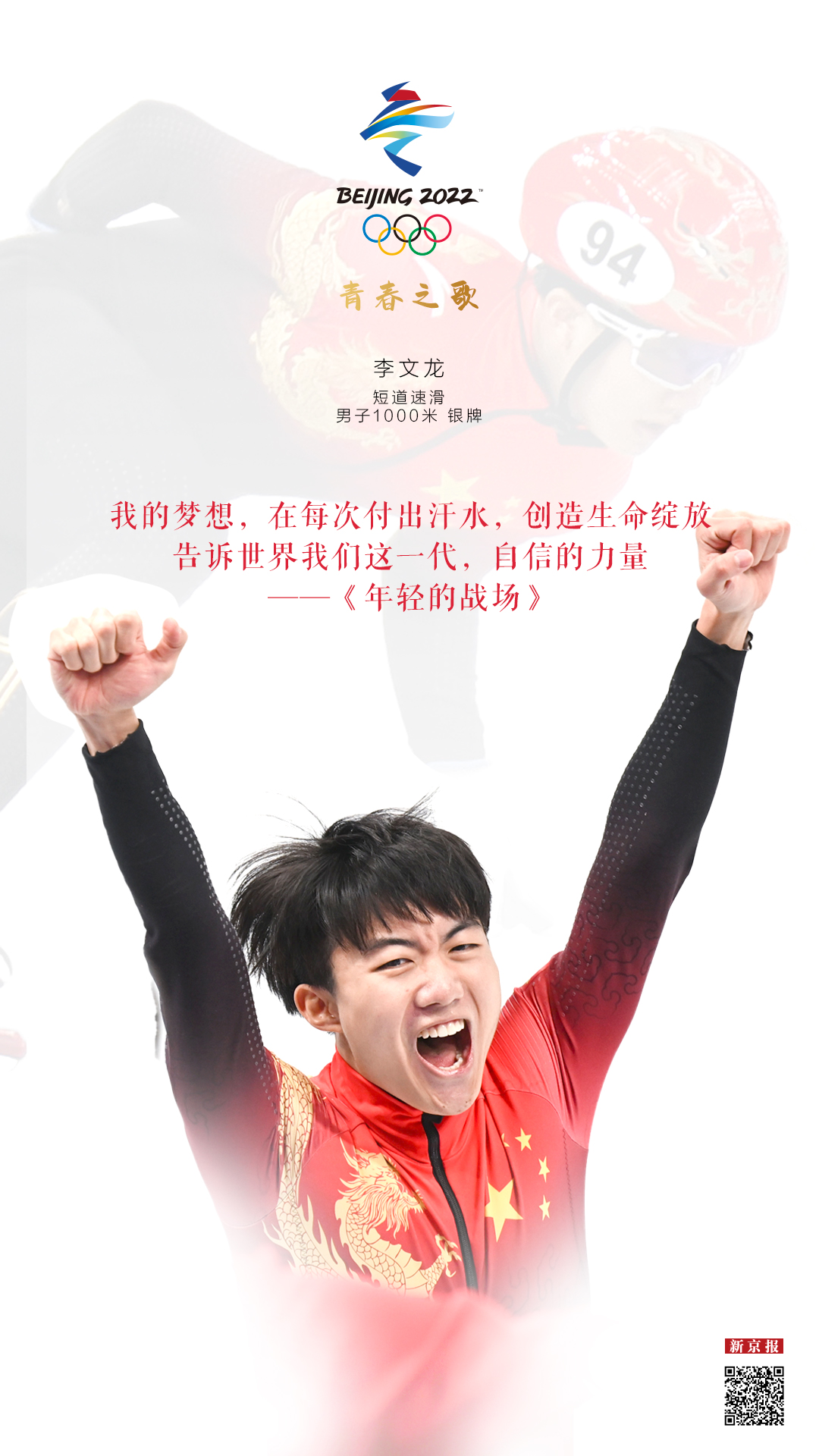 北京冬奥会开幕当天,李文龙迎来21岁生日。3天后的男子1000米比赛,他与两位师兄武大靖、任子威一同出战,最终收获了一枚宝贵的银牌。