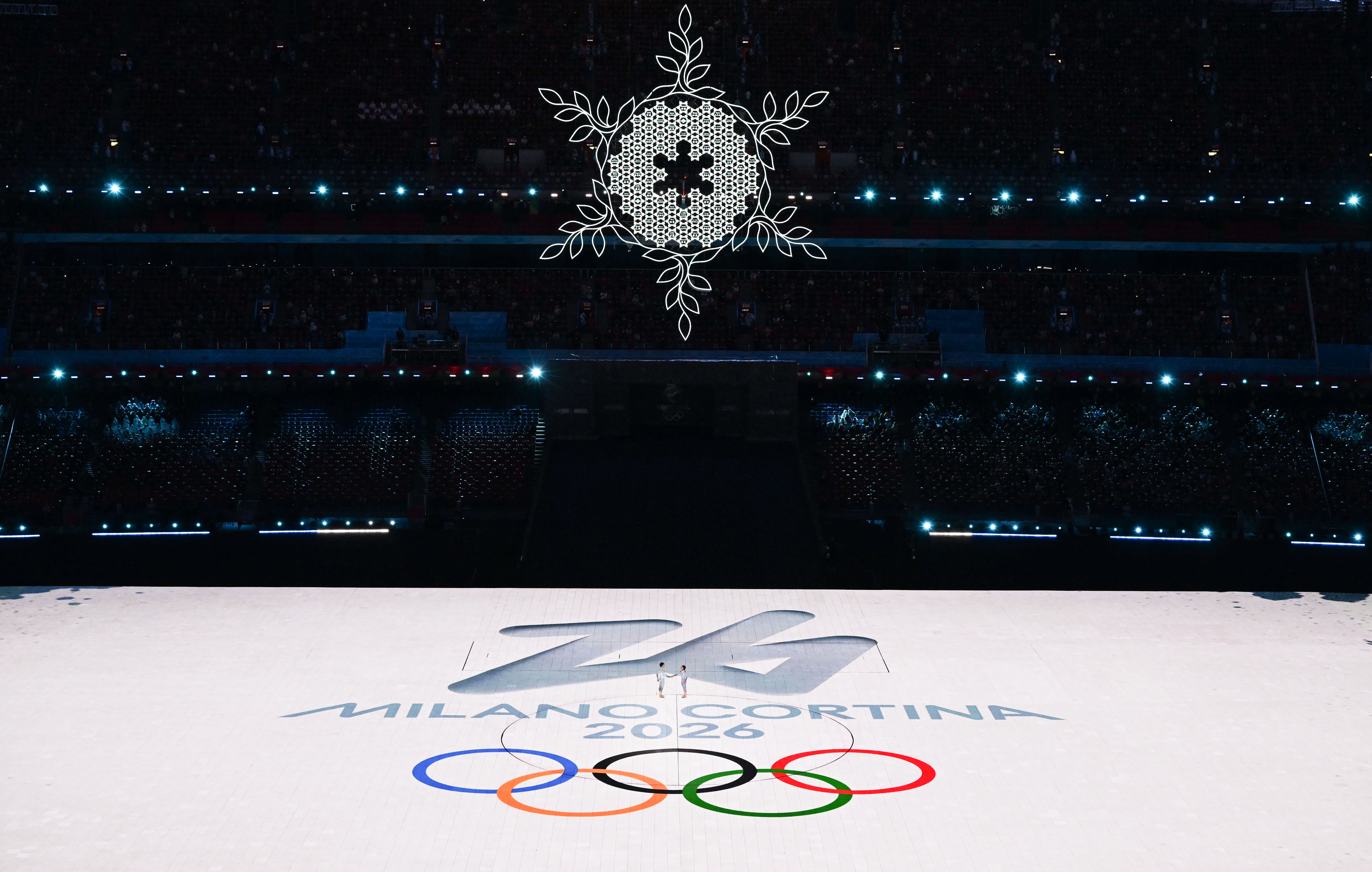 两名来自意大利的舞者从宣传片中穿越到鸟巢的万平LED舞台上,通过舞蹈动作和巨大的地面画面相互配合,呈现出了米兰的现代之美和科尔蒂纳丹佩佐的自然之美。