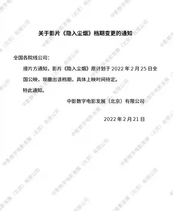 电影《隐入尘烟》宣布撤档。