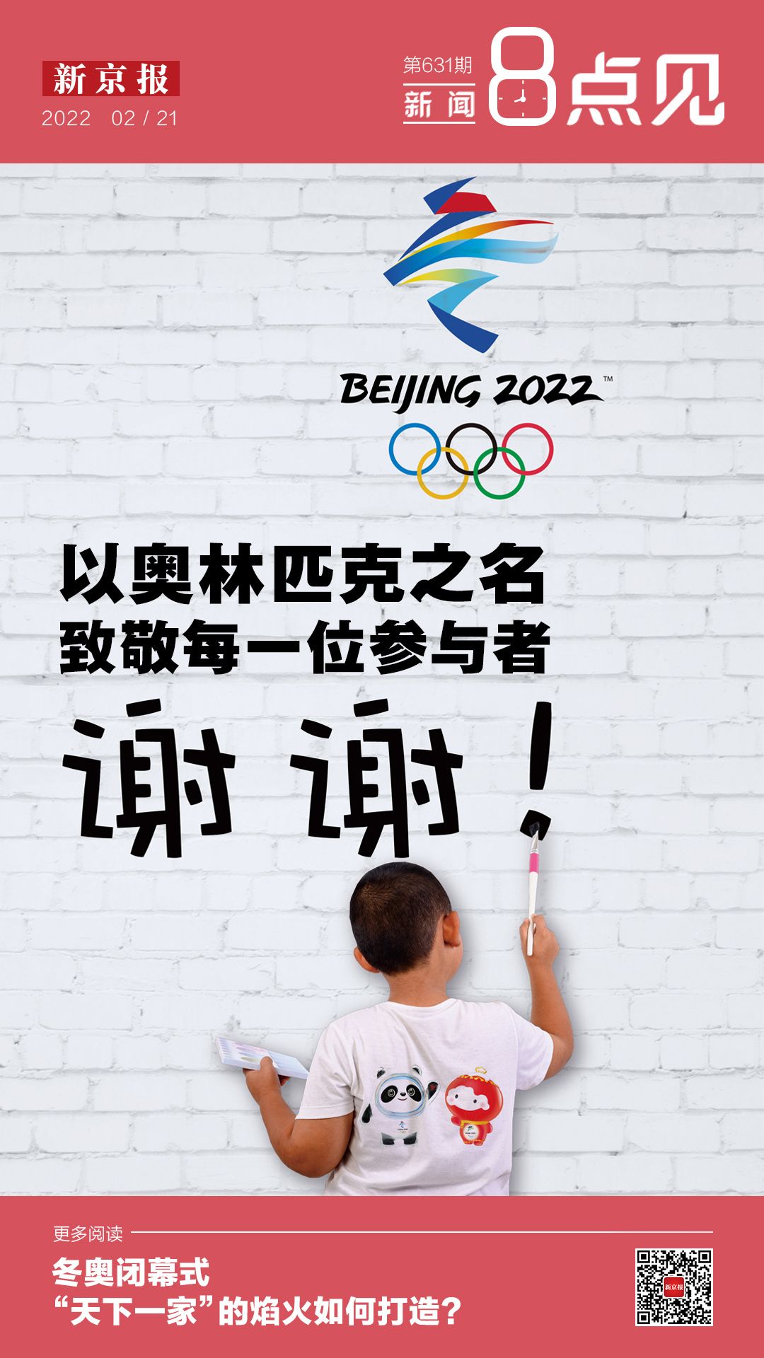以奥林匹克之名,致敬和感谢每一位“参与者”。正是因为有了他们的辛勤付出,才让北京冬奥会变得独一无二。也因此,不仅要感谢那些全力以赴的运动员,也应该感谢每个认真参与其中的人,感谢每个关注这场体育盛事的人。感谢他们的无私奉献,也感谢他们所展现出的开阔胸襟和气度。某种程度上说,正是因为有了每个人的支持与助威,北京冬奥会才得以呈现得如此成功。专题>>>
