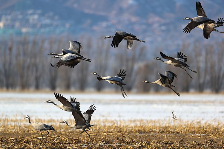 2月22日,官厅水库,准备降落的灰鹤。