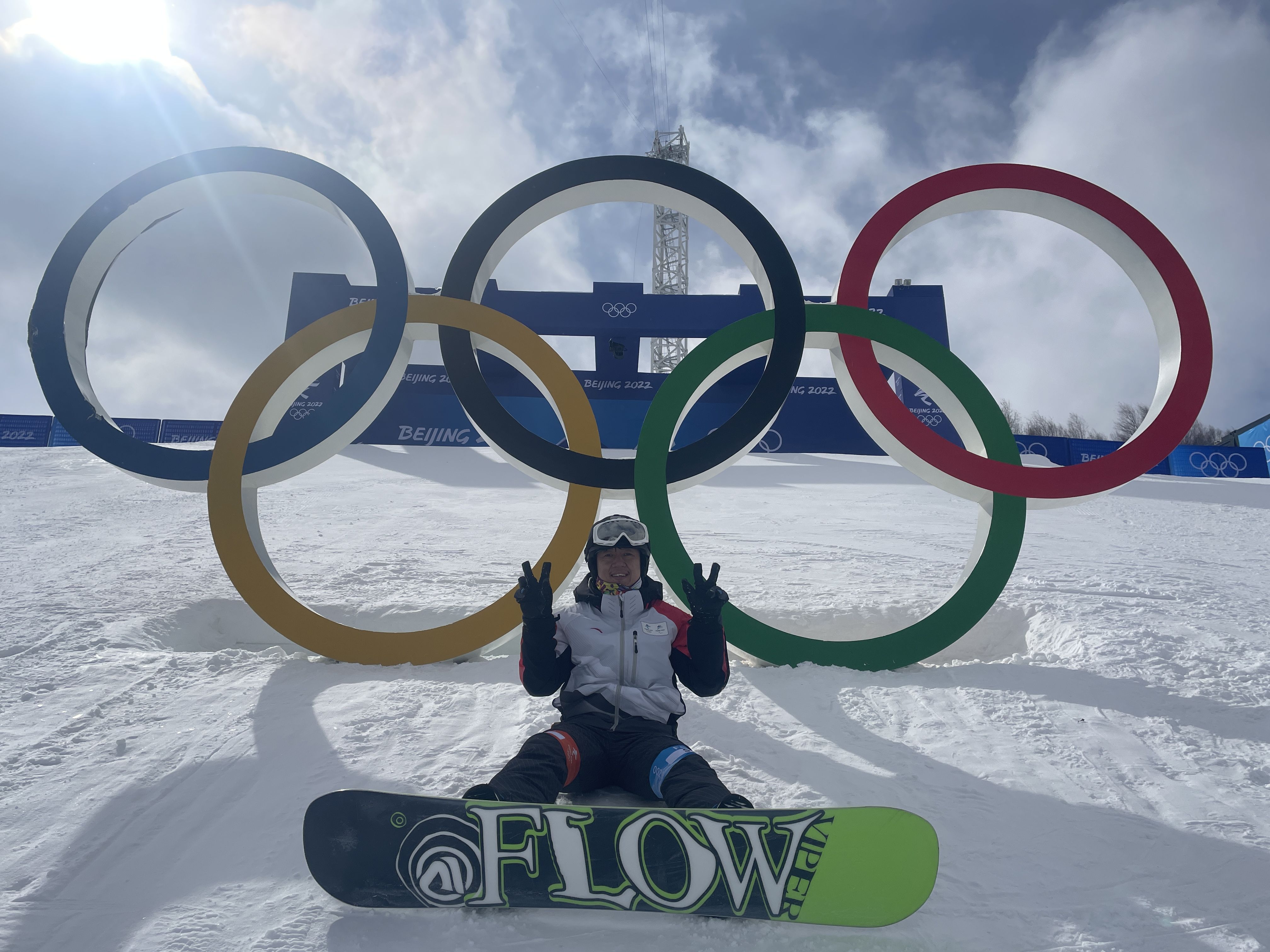刘鑫在2022年北京冬奥会张家口赛区拍照留念,受访者供图。