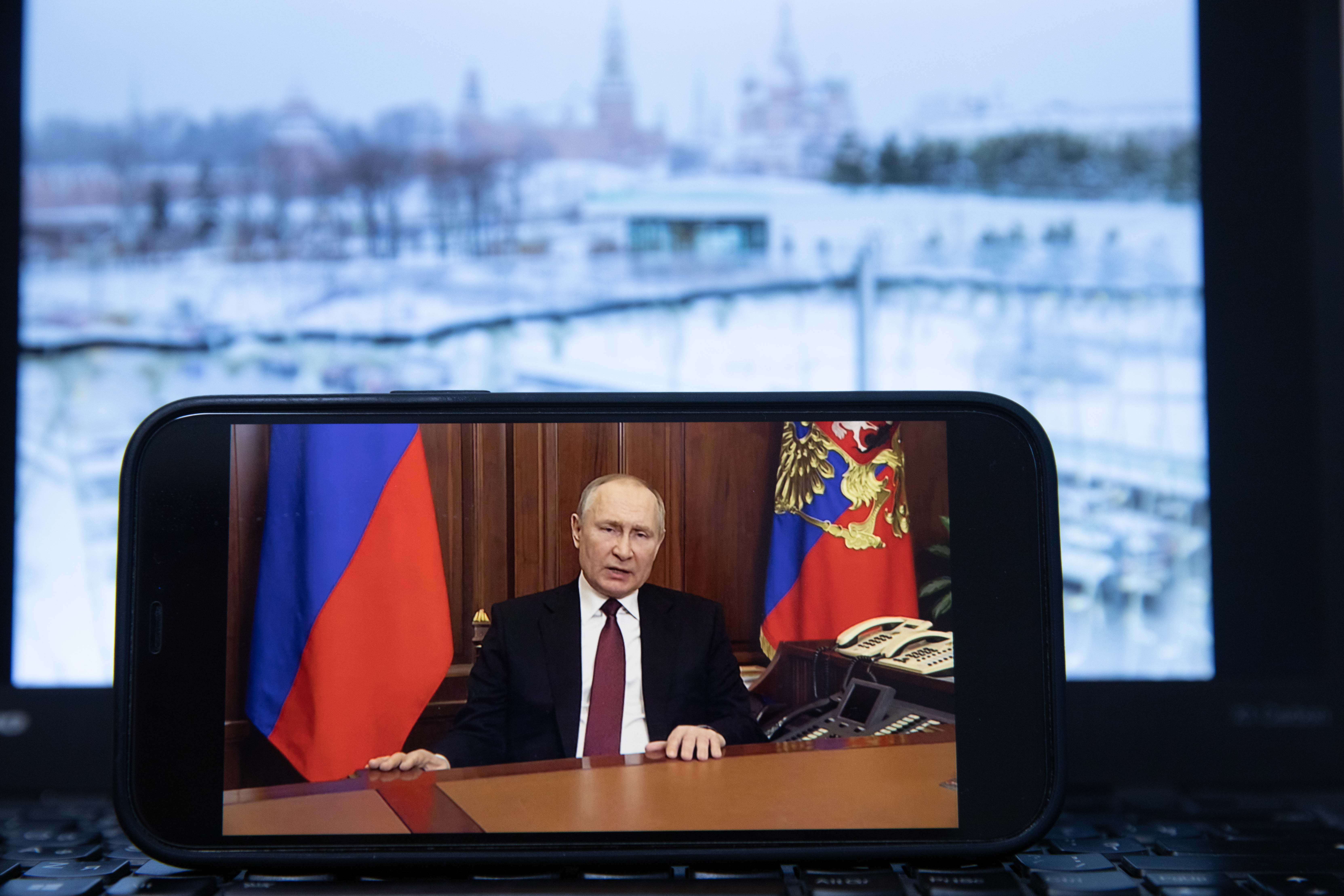 ▲俄罗斯总统普京24日清晨发表电视讲话说,决定在顿巴斯地区发起特别军事行动。新华社记者 白雪骐 摄