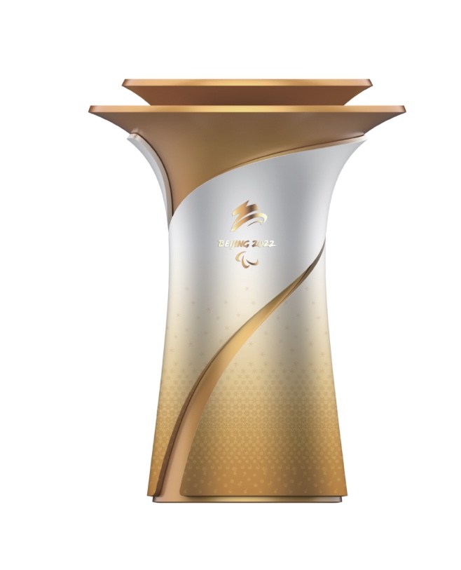 冬残奥会仪式火种台以“承天载物”为设计理念,创意灵感来自于中国传统青铜礼器——“尊”,造型风格与火炬、火种灯和谐一致。祥云纹路由下而上化为雪花,象征着2008年北京残奥会与2022年北京冬残奥会的精神传承。