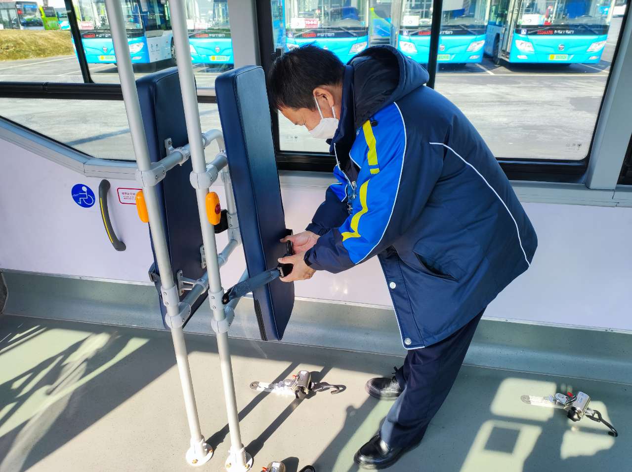 每次发车前司机都要反复检查安全带等是否牢固。北京公交集团供图