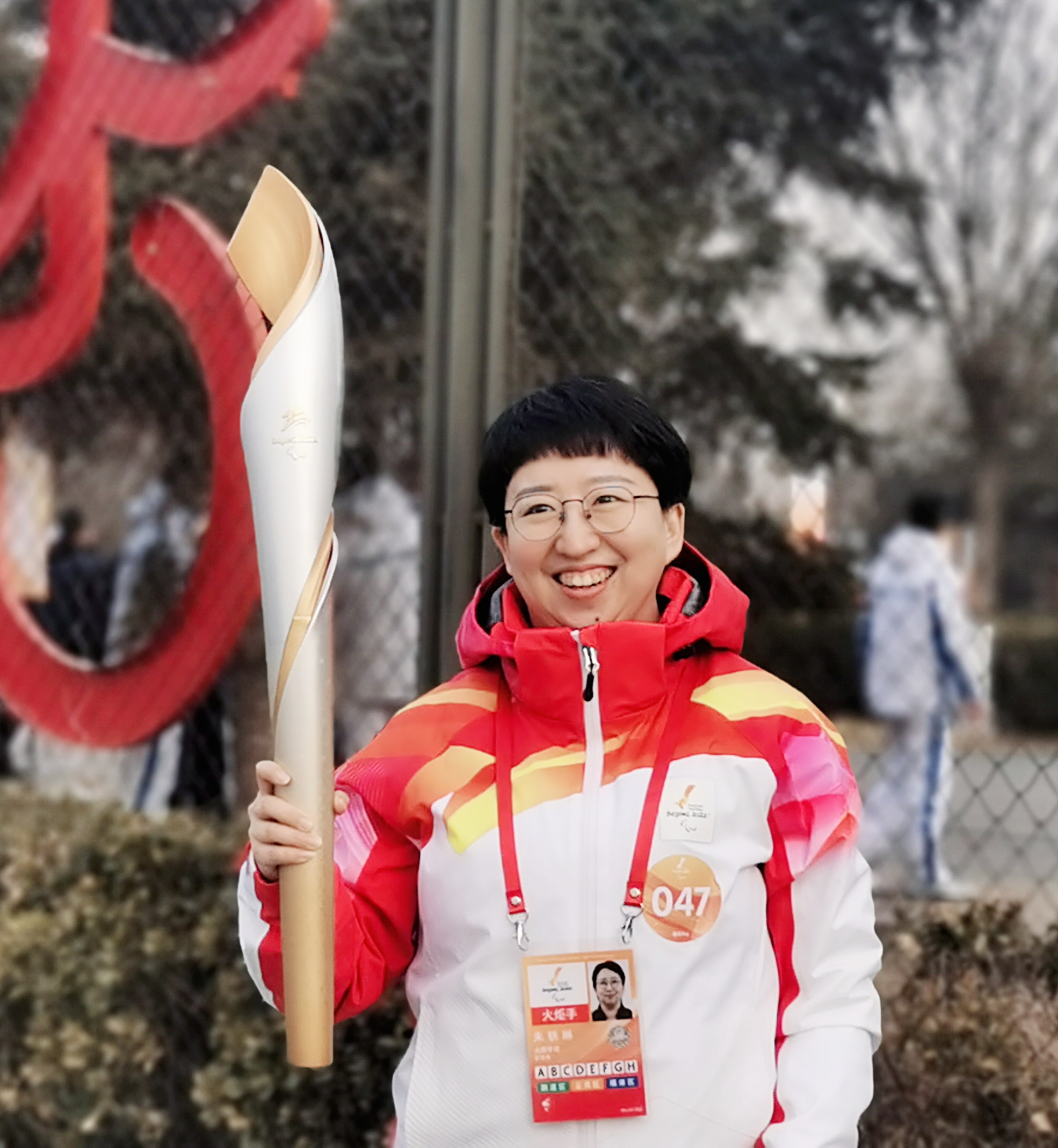 朱轶琳:2008年,我曾是残奥会志愿者培训讲师,为千余名社会志愿者培训讲解扶残助残的专业知识,传播残疾人包容、平等、共享的理念。10年过去了,我也始终坚守在残疾人事业这条战线上奋斗,继续为我身边的人传递正确的残疾人观,呼吁社会关注、关心残疾人,为残疾人朋友奔走宣传好的政策,共享成果。我想这是我能参与冬残奥会火炬传递的原因。