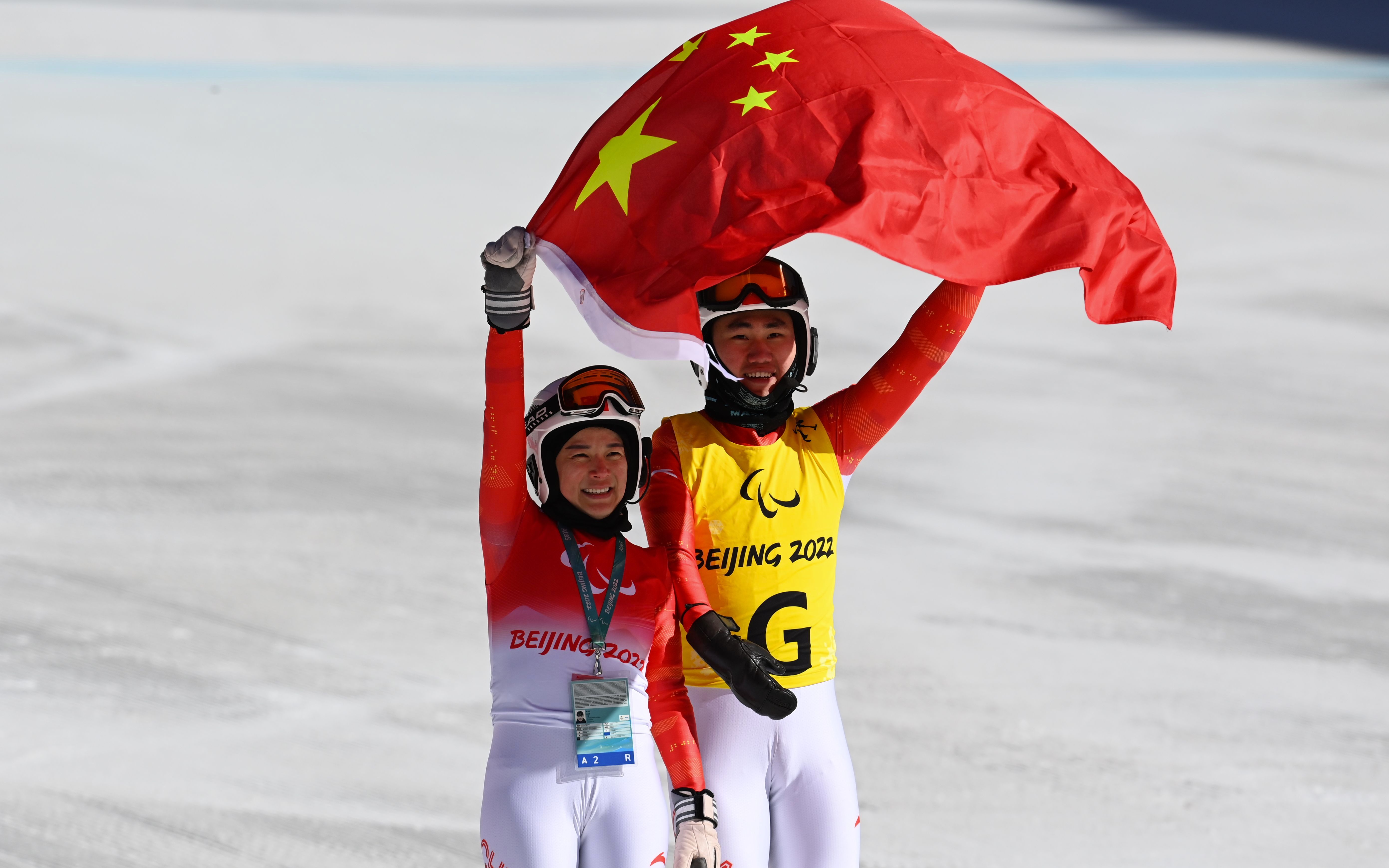 中国运动员朱大庆在所有选手中排在第7位出发,在领滑员闫寒寒的领滑下,朱大庆的滑行展现了此前官方训练时的良好状态,最终以1分21秒75的成绩获得银牌,这也是中国队在北京冬残奥会上获得的第一枚奖牌。阅读全文>>>