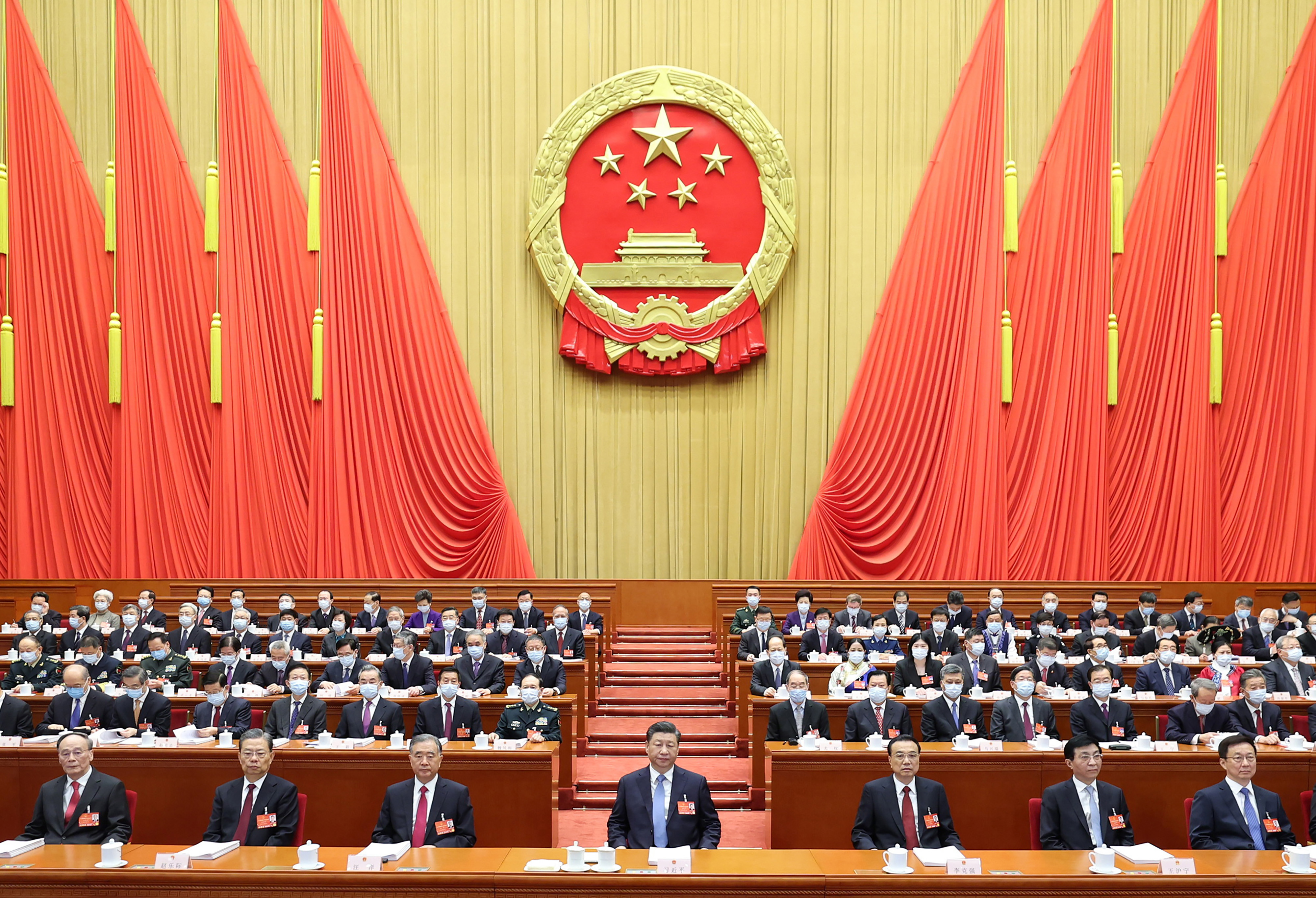 习近平、李克强、汪洋、王沪宁、赵乐际、韩正、王岐山和大会主席团成员在主席台就座。