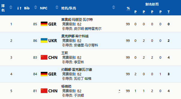 新京报讯(记者 赵雪)3月8日,北京冬残奥会冬季两项女子中距离视障组比赛在张家口赛区国家冬季两项中心进行,中国选手王跃以42分50秒3的成绩收获一枚铜牌,德国选手莱奥妮·玛丽亚·瓦尔特以40分56秒2夺得金牌,乌克兰选手奥克萨娜·希什科娃以40分59秒9获银牌。另外一名中国选手杨倩茹获第五名。