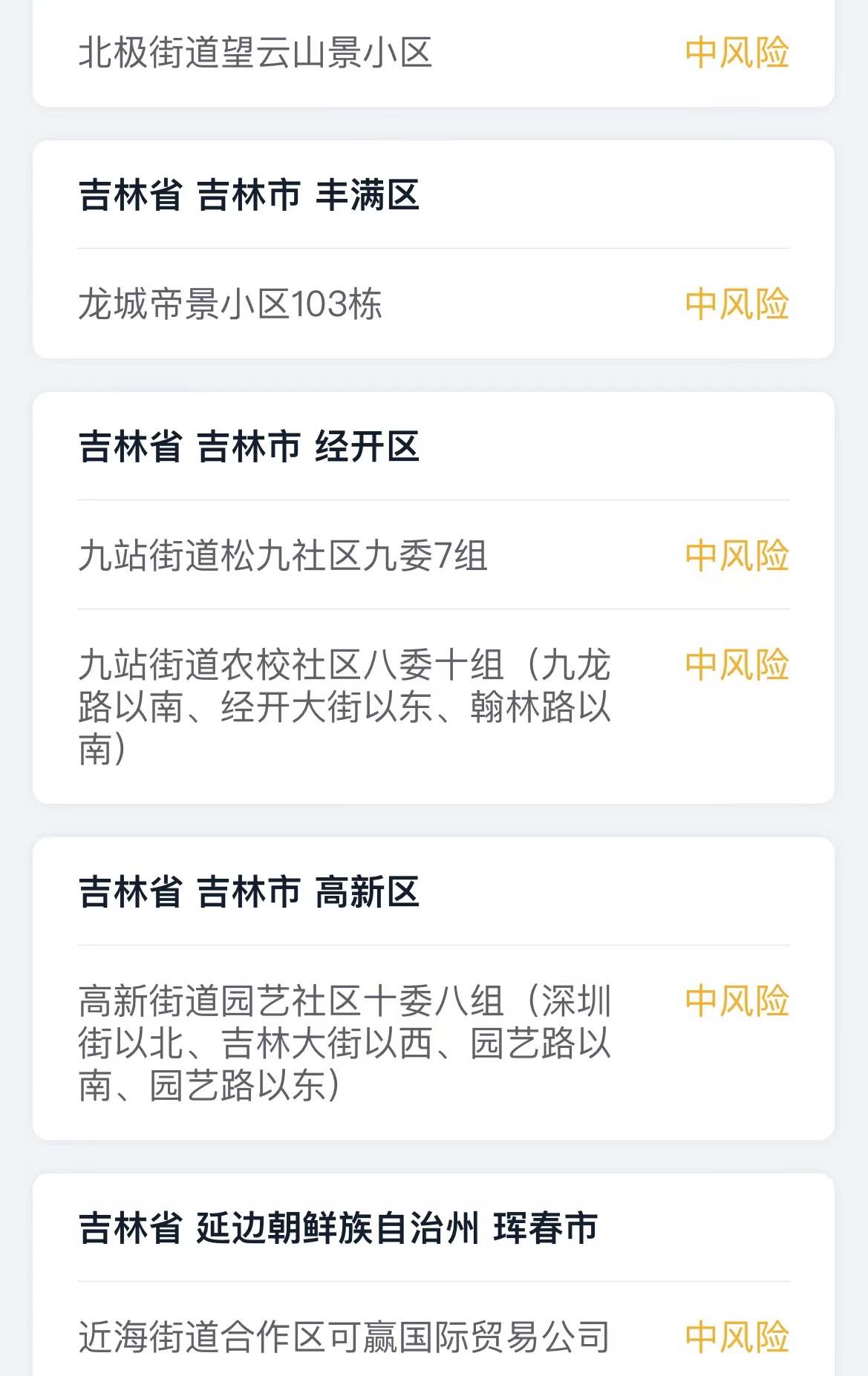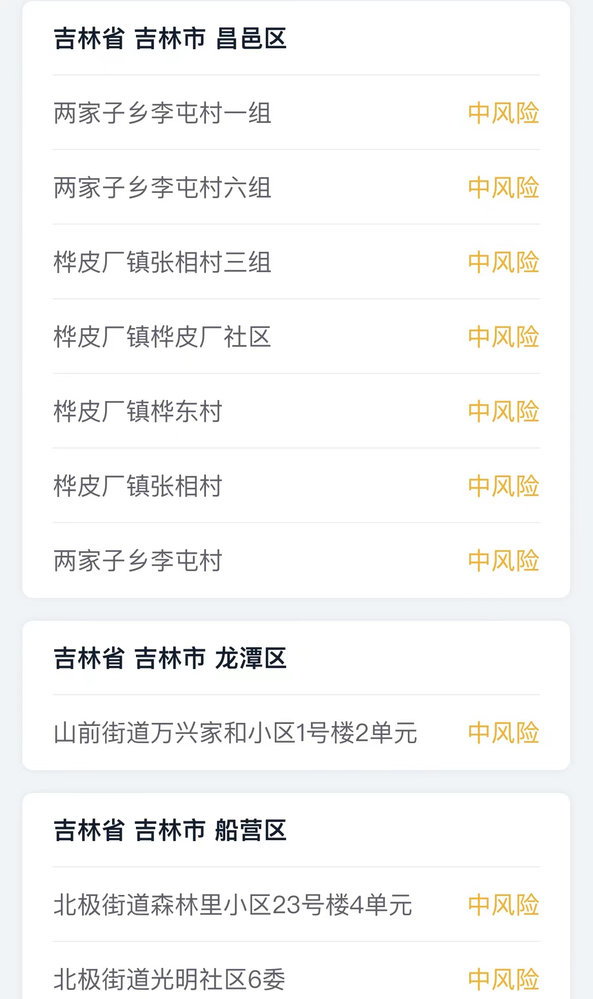 截至3月10日18时,吉林省共有16个中风险地区。此外,吉林市已于3月10日12时开启第五轮核酸检测。