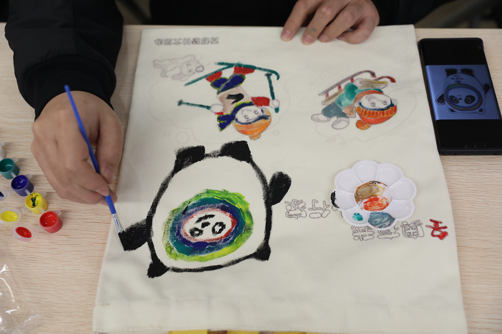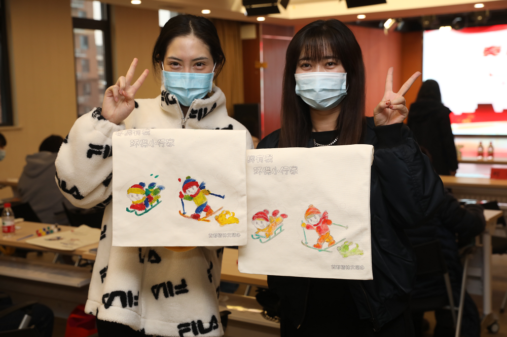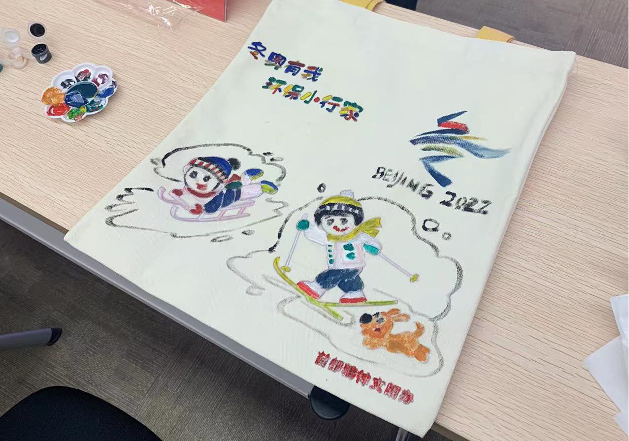 本次活动中,最受欢迎的环节是手绘冬奥环保袋。