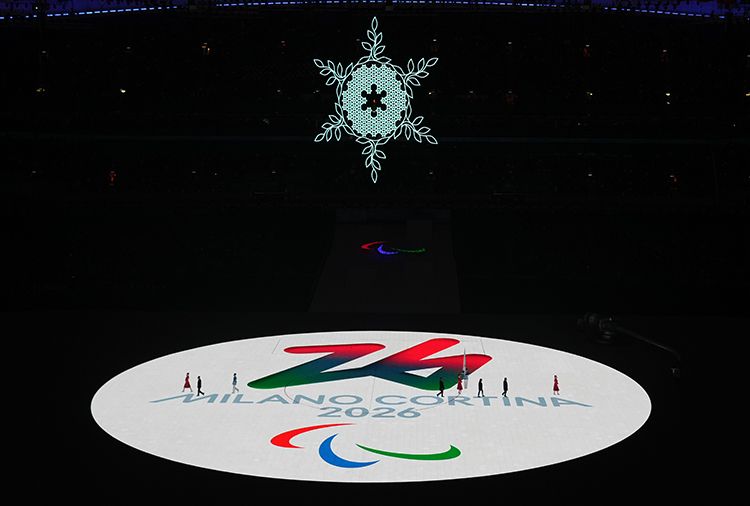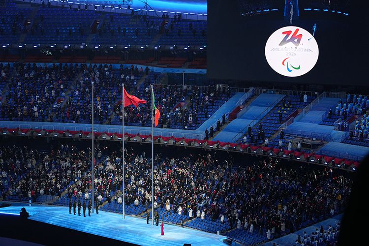 场地中央点亮2026年米兰-科尔蒂纳丹佩佐冬残奥会会徽。