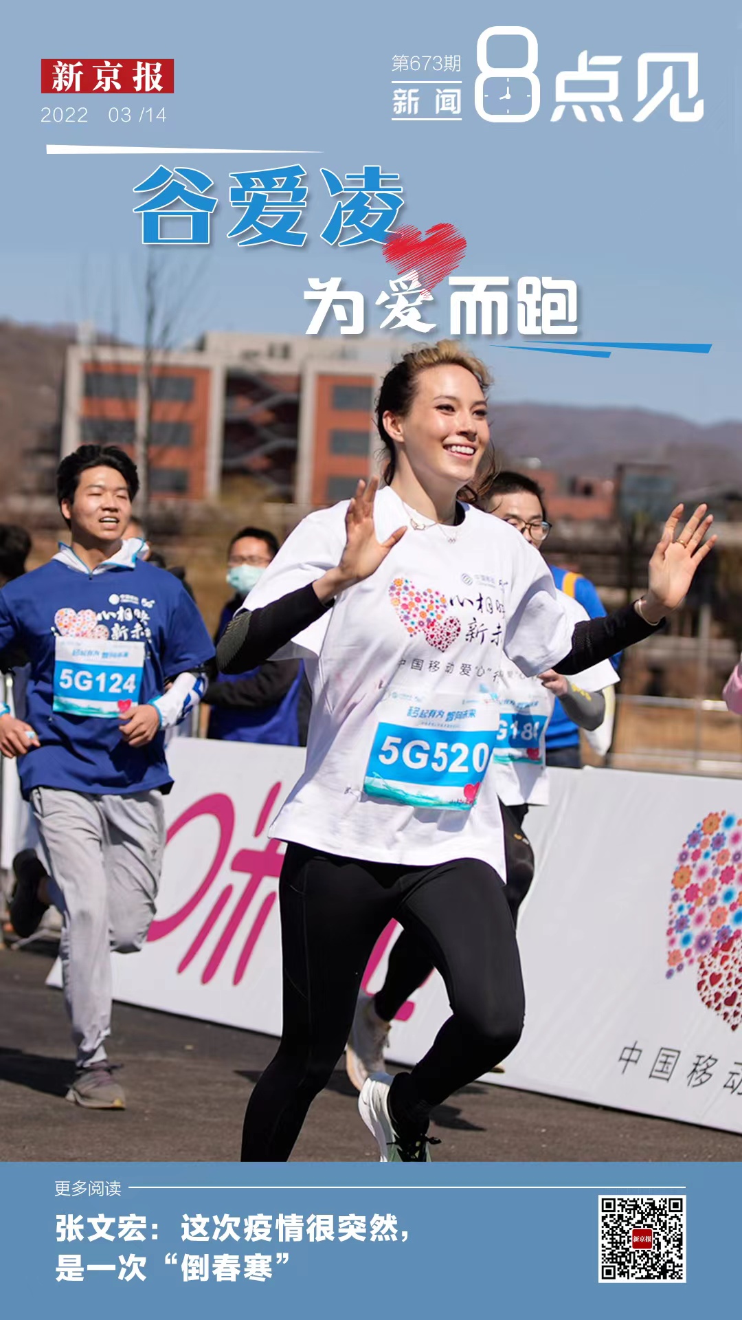 3月14日,谷爱凌在北京冬奥会后首次公开亮相,参加爱心慈善跑活动。