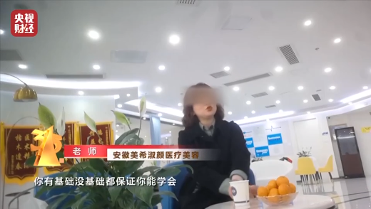 ▲某医美行业培训机构工作人员称:“你有基础没基础都保证你能学会”。图/央视财经