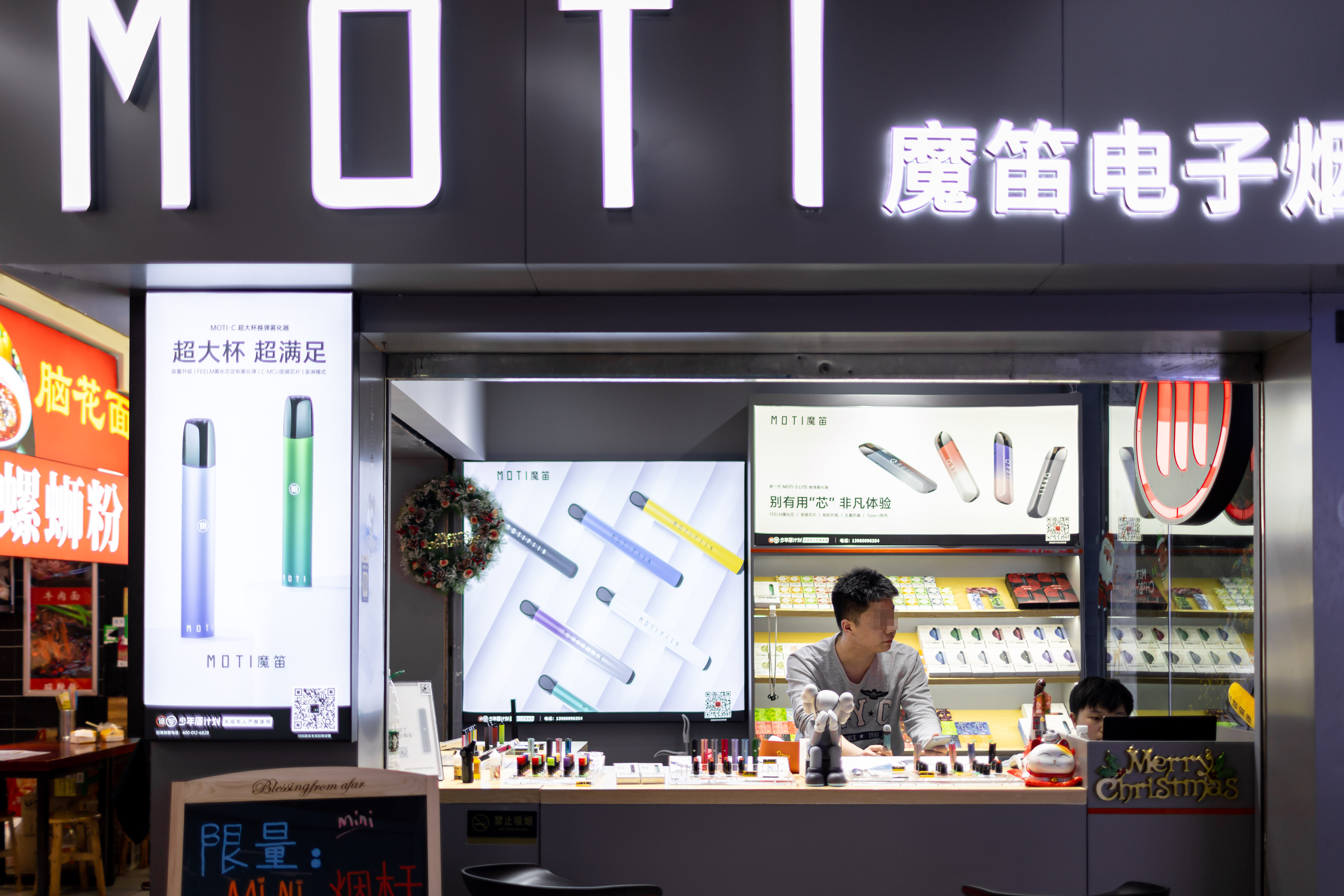 2021年3月30日,四川成都,商场内一家电子烟门店挂满了电子烟广告。图/IC photo
