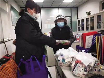 香河园街道就医保障组人员为居民代买药品。香河园街道供图