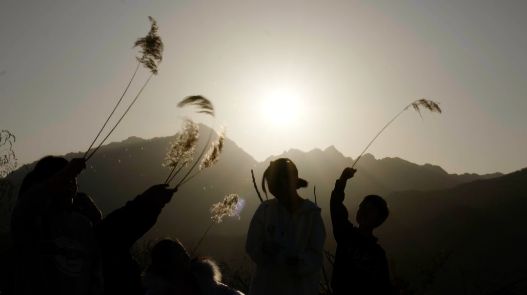 马兰村的孩子们在山上玩耍。