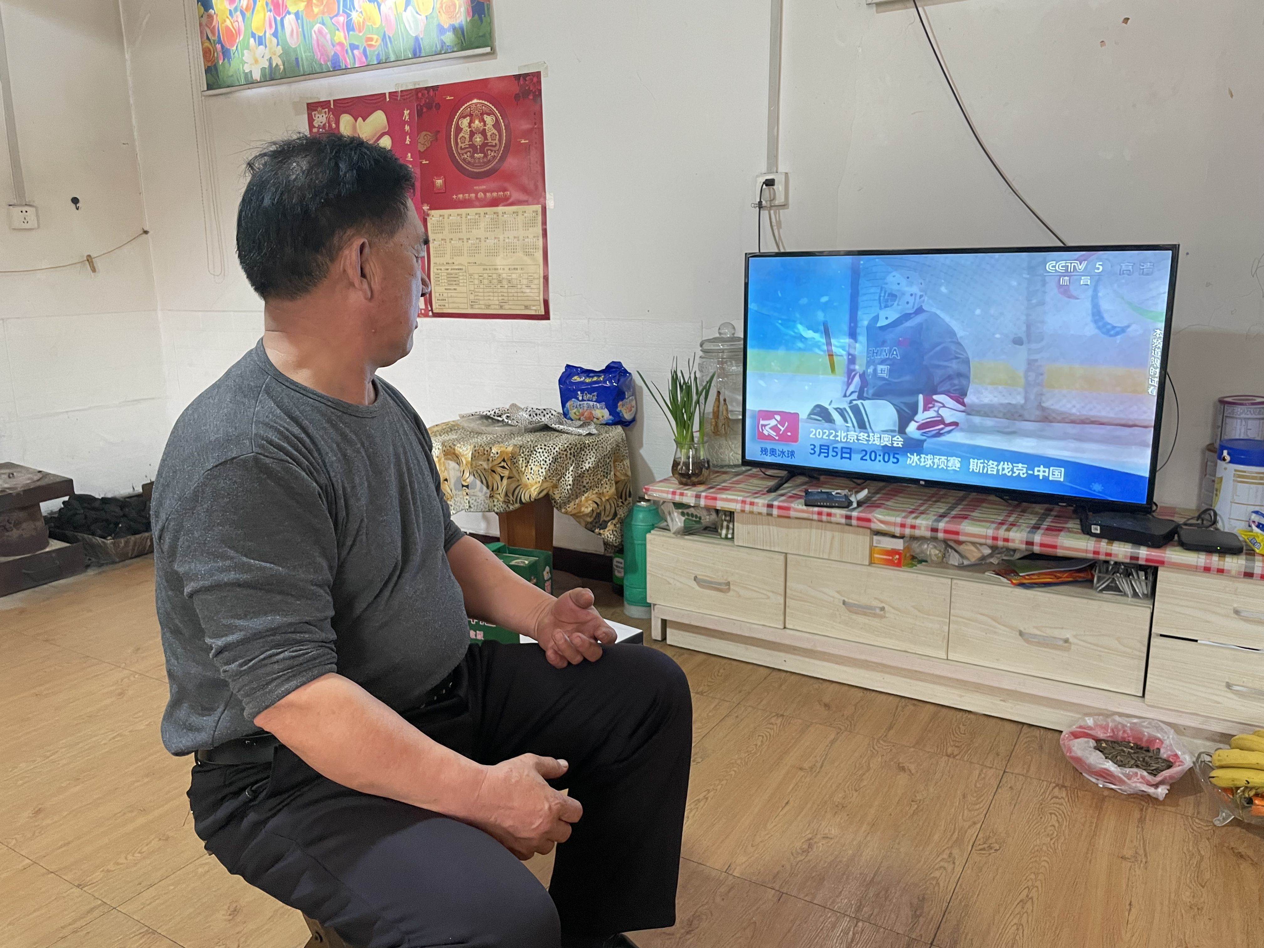3月5日下午,在崔玉涛的家中,父亲崔添禄一直开着电视,等待当晚中国残奥冰球队的第一场比赛。新京报记者 张静姝 摄
